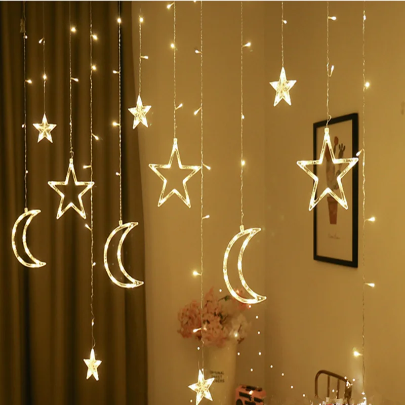 СВЕТОДИОДНАЯ Гирлянда-сосулька со звездами и луной, гирлянда-занаве...