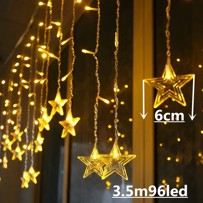 Рождественская гирлянда 2021, световая занавеска со звездами, светильник ственские украшения для дома, рождественские украшения, рождественские гирлянды, новогодние украшения 2022