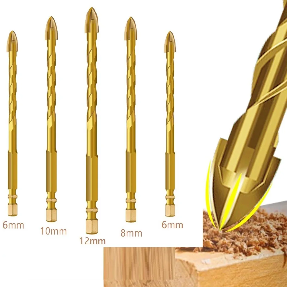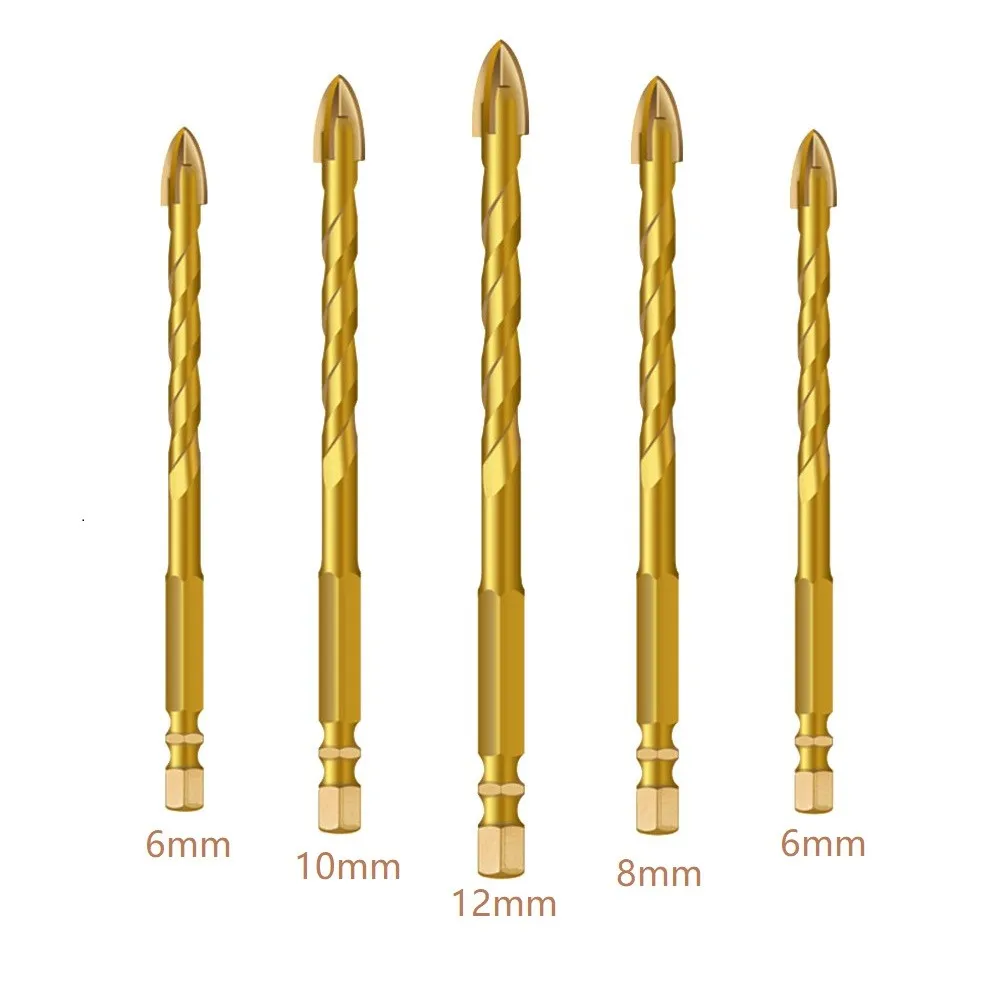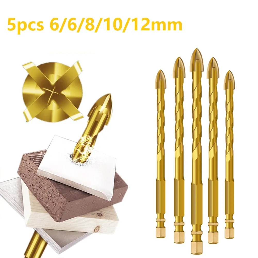 Сверла шестигранные для стекла, керамики, бетона, 5 шт., 6-12 мм