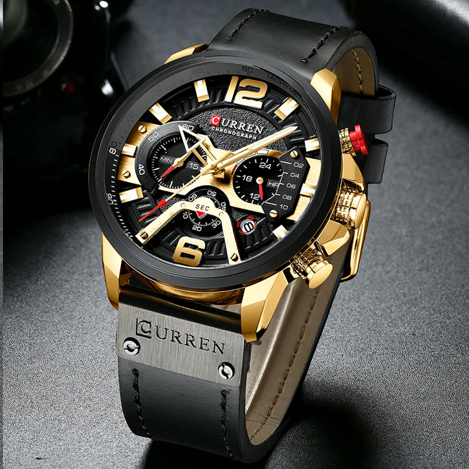 Часы CURREN мужские наручные в стиле милитари, роскошные брендовые модные спортивные водонепроницаемые деловые, с кожаным ремешком