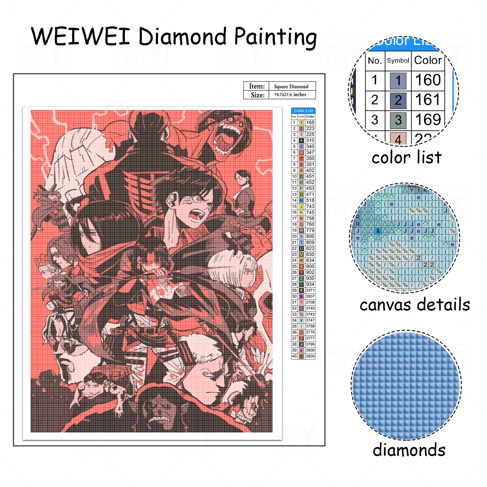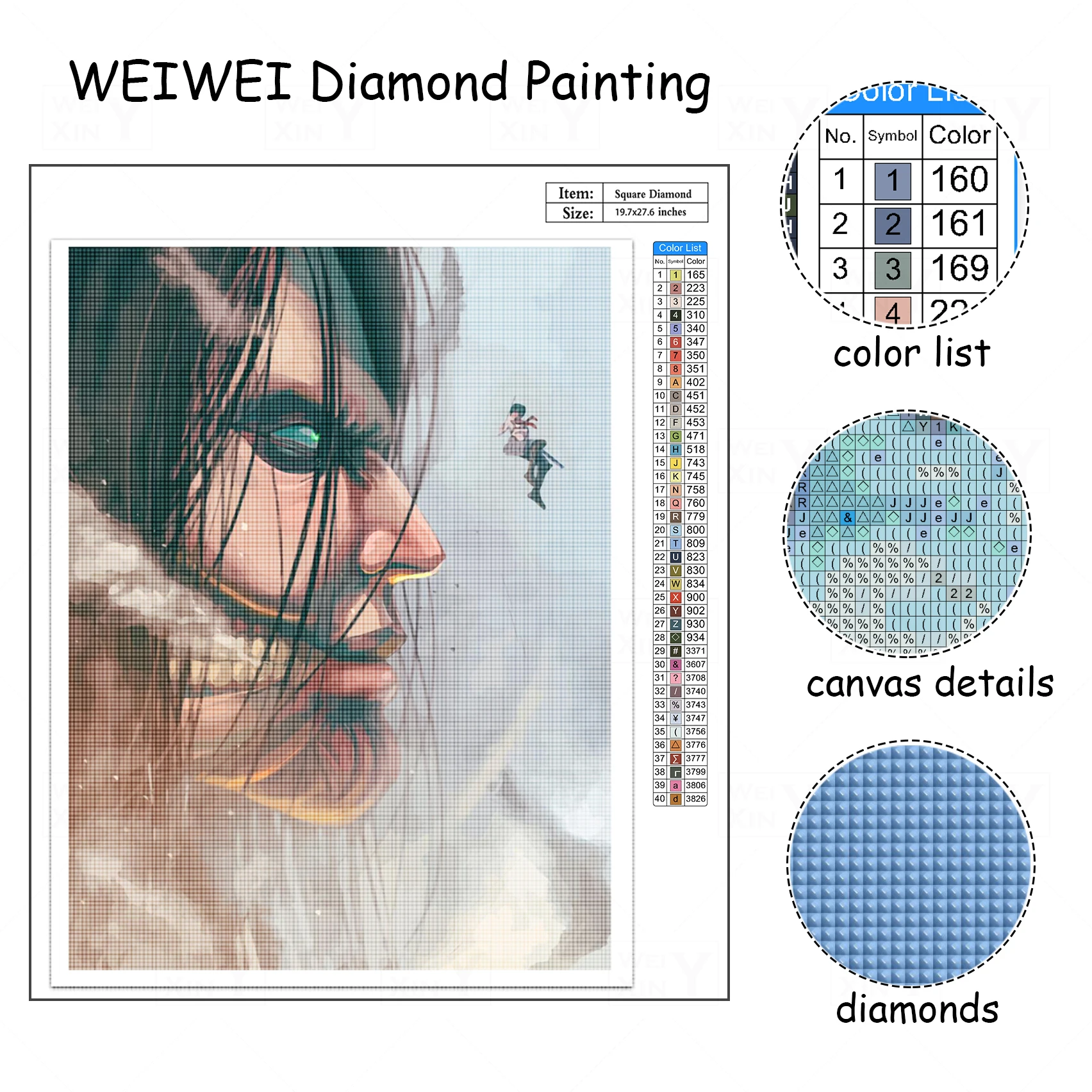 Наборы для алмазной живописи WEIWEI для взрослых, аниме Алмазная мозаика, полная картина атака на Титанов, Эрен джейгер, вышивка крестиком, художественный Декор