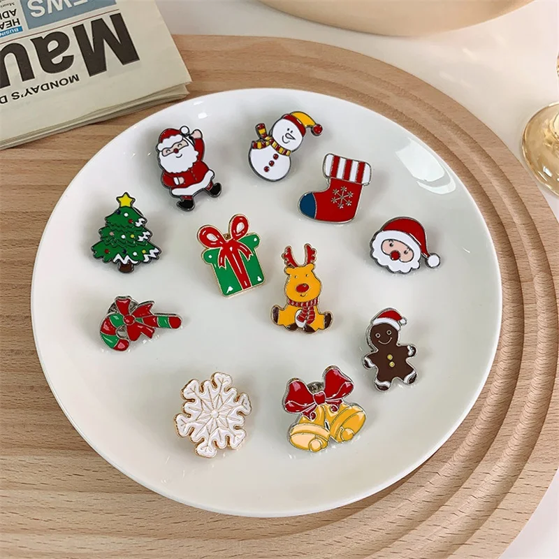 Рождественская брошь для мужчин и женщин, милые снежинки, колокольчики, дерево, лось, Санта-Клаус, аксессуары для сумок, лацканов, булавка, подарочные украшения