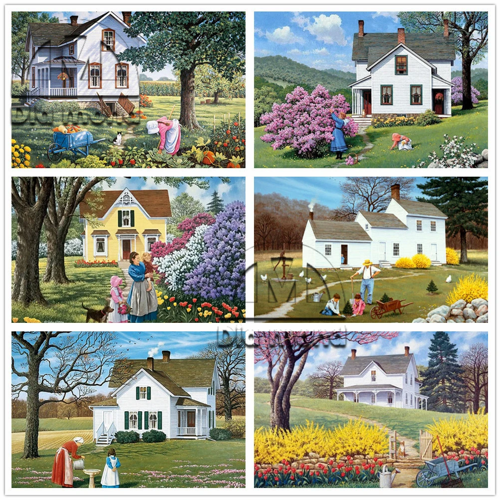 Алмазная живопись сделай сам, мозаика с изображением фермы, ландшафта, дома, полная выкладка, вышивка стразами, Сельская жизнь, наклейки для домашнего декора