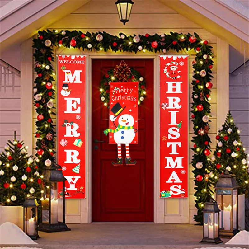 Украшения для дома 2022, гирлянда, новогодний, Рождественский знак крыльца, Рождественский Декор для двери, висячая ткань, рождественские подарки