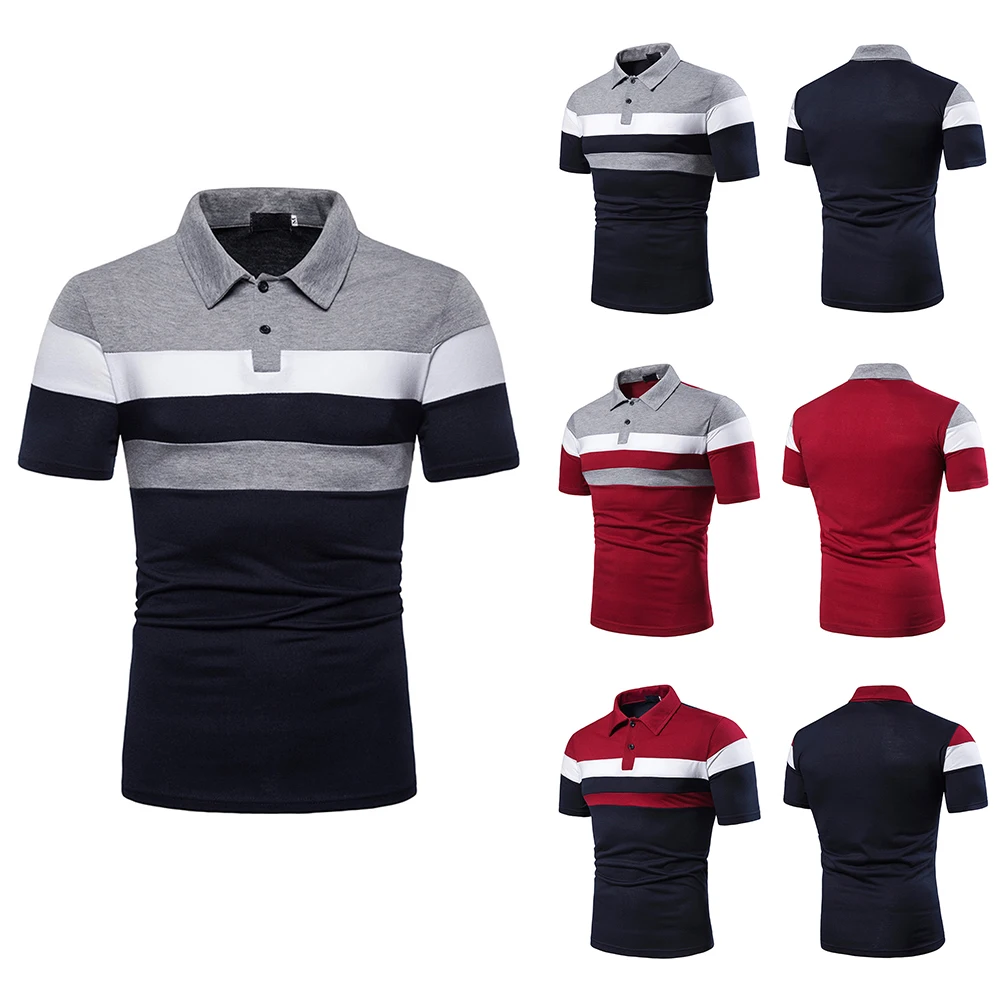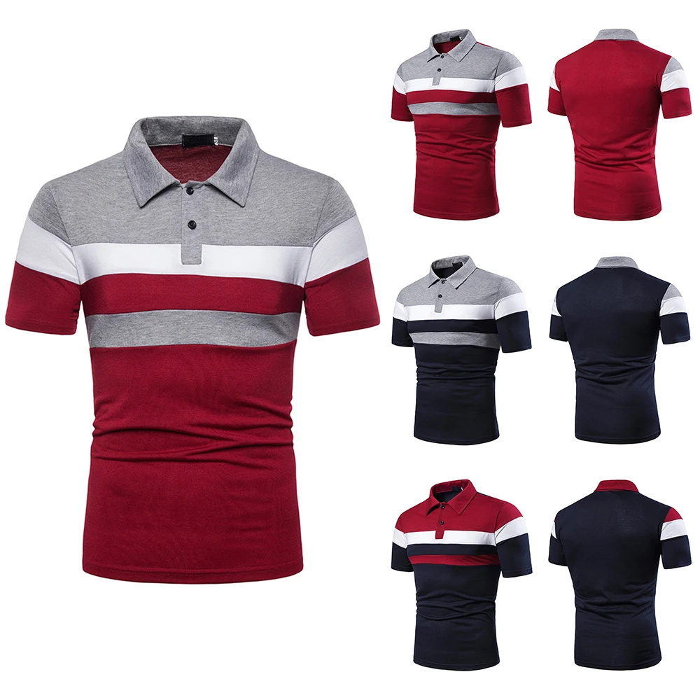 Рубашка-поло мужская с коротким рукавом, приталенная Повседневная модная одежда с принтом, с карманами, с воротником с лацканами, лето