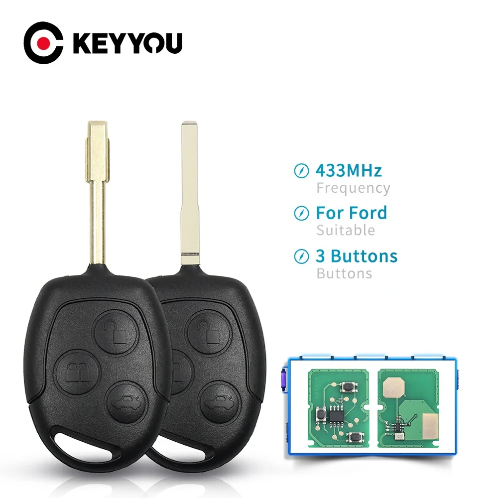 KEYYOU для Ford 3 кнопки 433 Мгц дистанционный вход брелок для Ford Mondeo Fiesta Focus Ka Transit