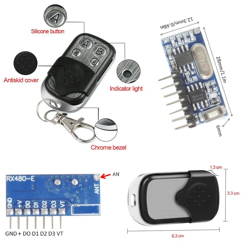 Я получил посылку быстро, однако при тестировании я обнаружил, что выходные порты приемника (rx) не соответствуют той же серии пультов дистанционного управления (tx). Для команд A, B, C, D, я получил в приемнике D3, D0, D2 соответственно и команды D не декодировали, Я повторил тесты для других tx, но у меня всегда был такой же ответ в rx. Я отправил сообщение поставщику, но они еще не ответили.