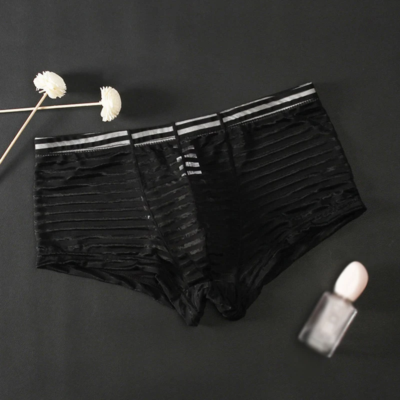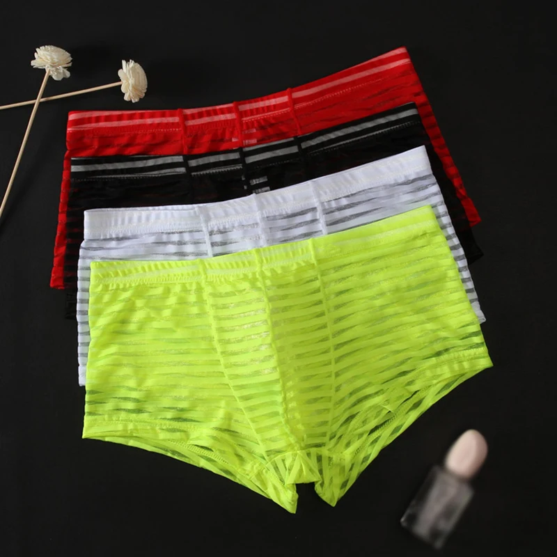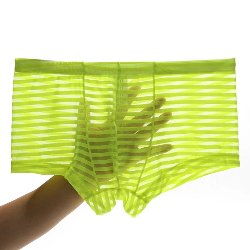 Горячие сексуальные Полосатые мужские трусы, бесшовные шорты-боксеры, сетчатые Прозрачные Боксеры, ультратонкое нижнее белье из ледяного шелка, мужские трусы-боксеры