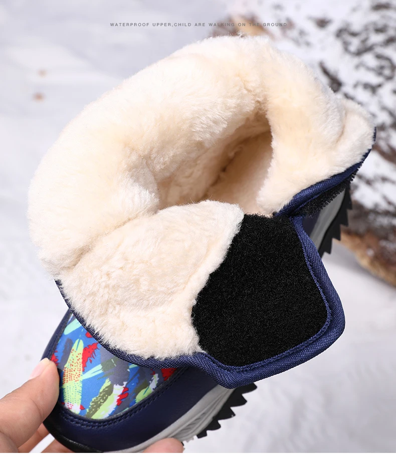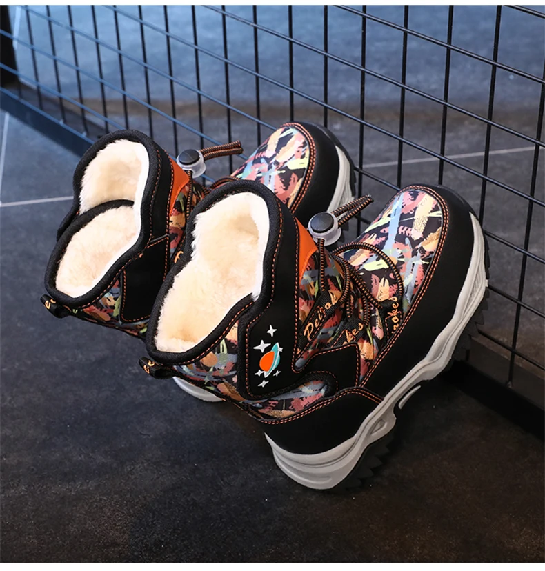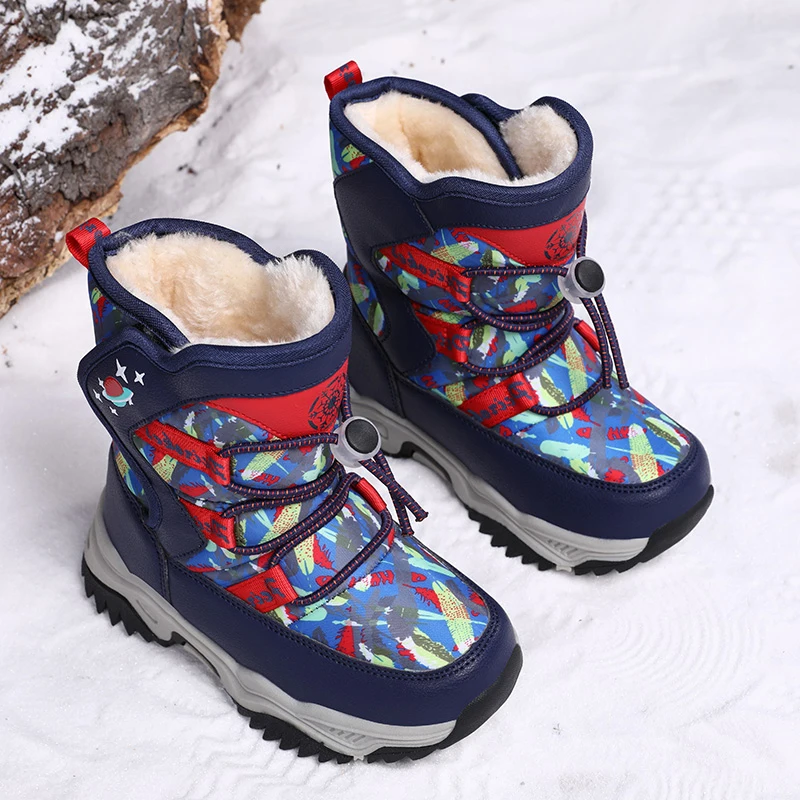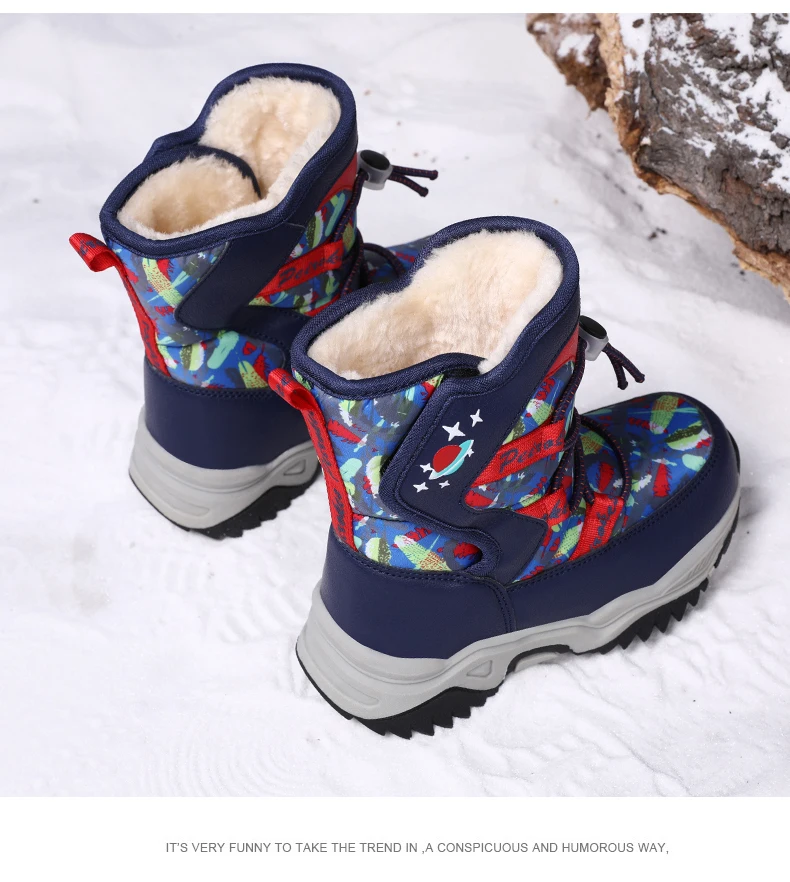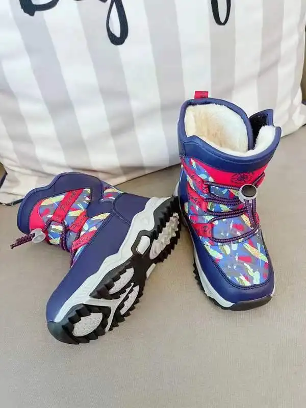 Детские зимние ботинки, модные повседневные ботинки для мальчиков из чистого хлопка с бархатной подкладкой, теплая детская спортивная обувь для снега, товары для активного отдыха