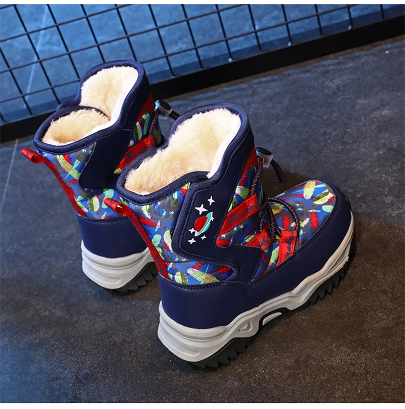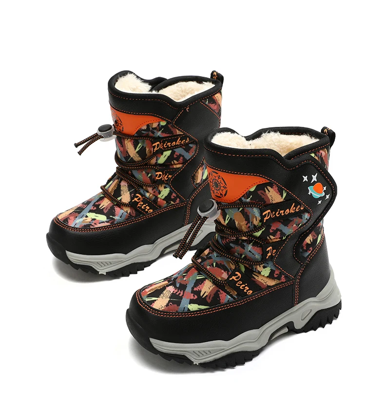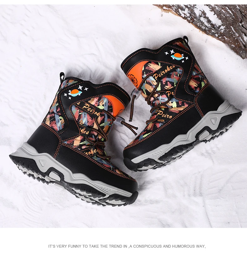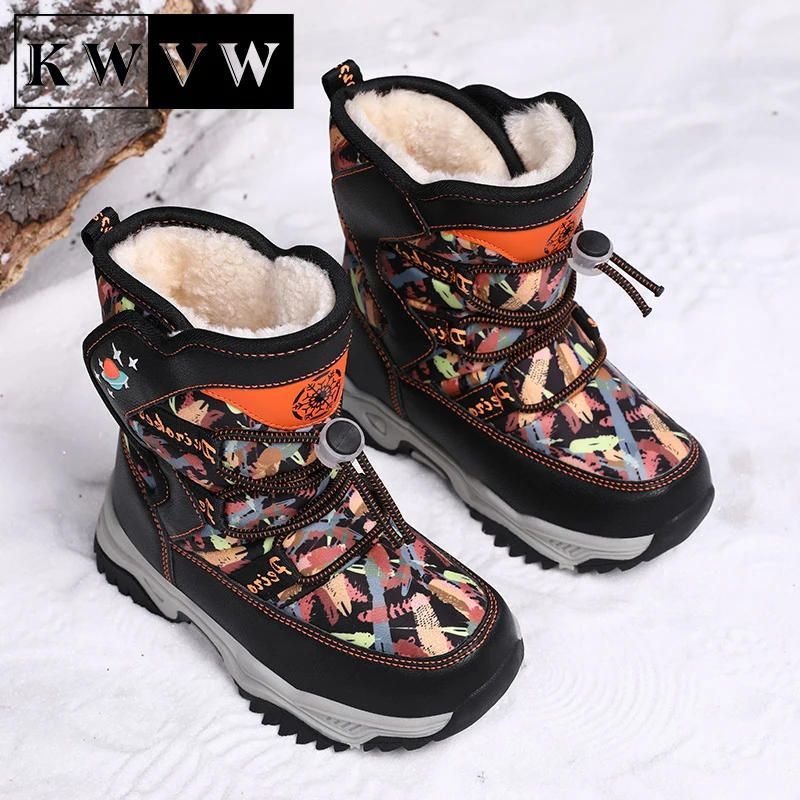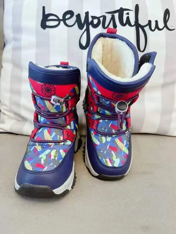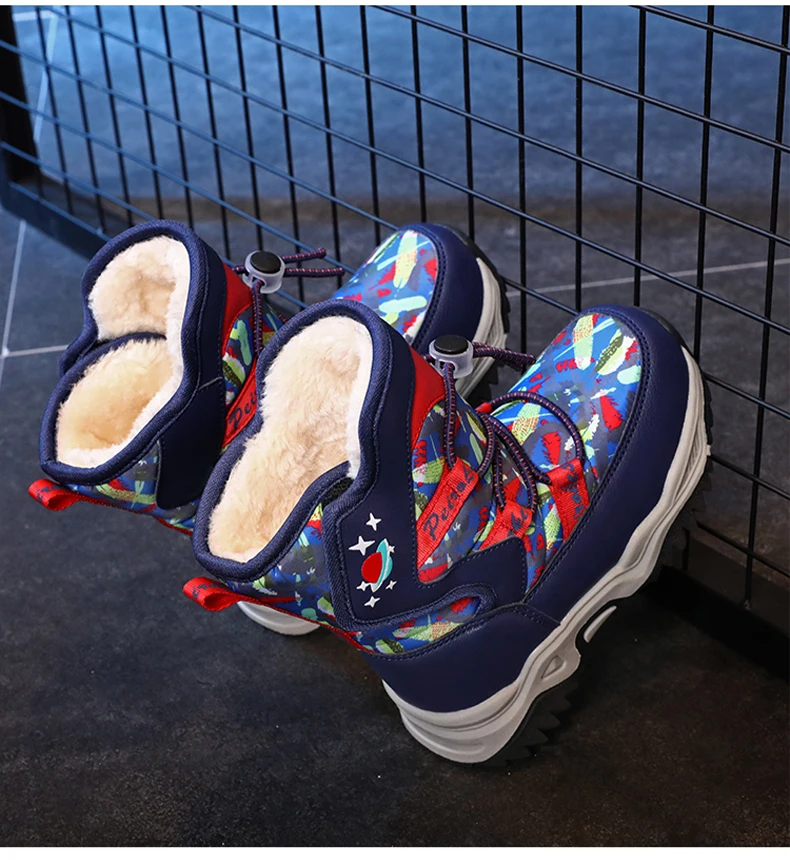 Детские зимние ботинки, модные повседневные ботинки для мальчиков из чистого хлопка с бархатной подкладкой, теплая детская спортивная обувь для снега, товары для активного отдыха