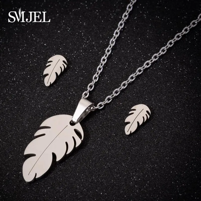 Ожерелье из нержавеющей стали с перьями, классические модные богемные серьги с растениями и листьями, ожерелье для женщин, комплект ювелирных изделий, свадебные подарки