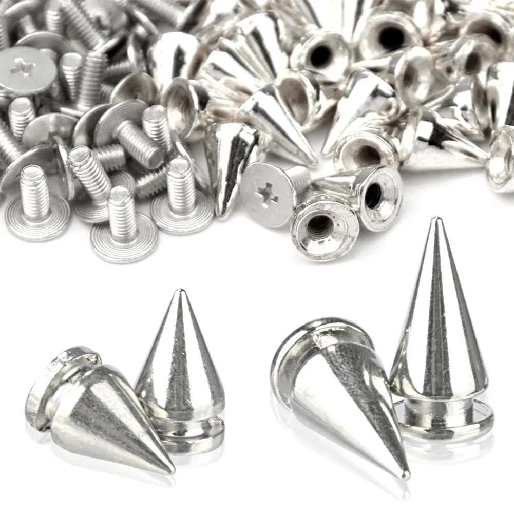 Крутые Серебряные Шипы и заклепки панк Винт Задняя пуля конусные Шпильки заклепки-Шипы кожаные аксессуары для рукоделия.
