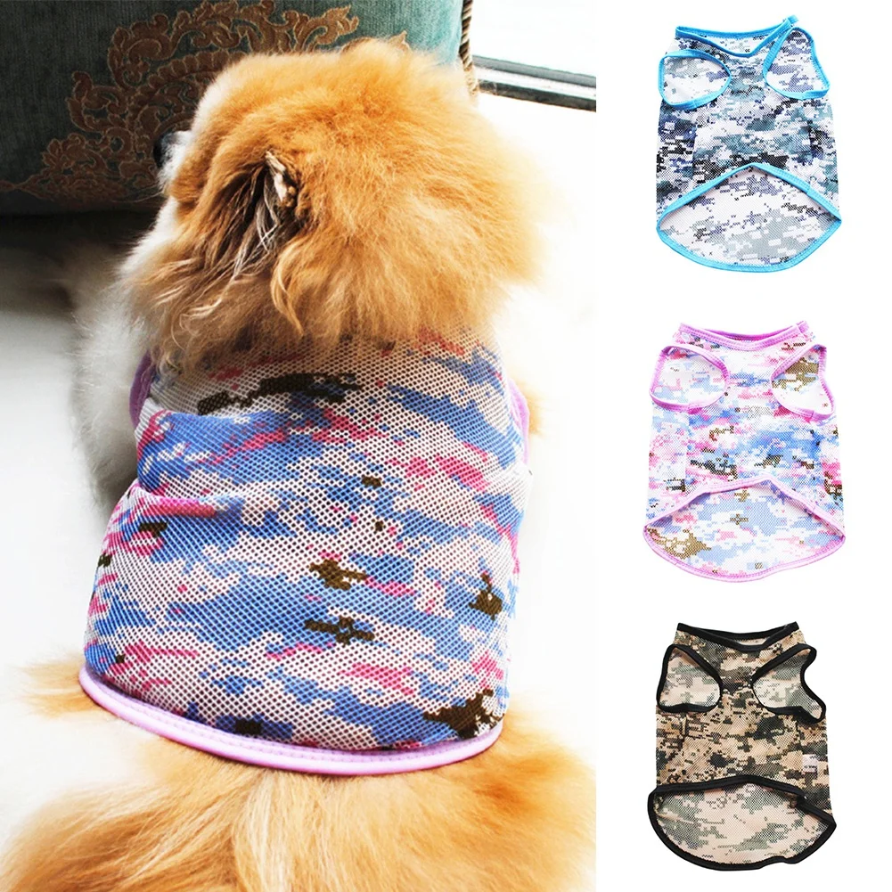Женская камуфляжная одежда для домашних животных с принтом, футболка для щенков и котят, дышащая рубашка без рукавов для маленьких собак