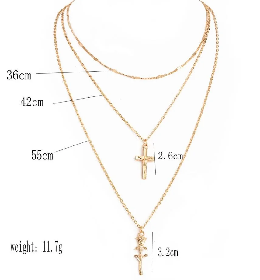 Модное ожерелье из сплава Иисуса Христа, подвеска в виде цветка розы, трехслойное ожерелье, позолоченное металлическое колье с цепочкой
