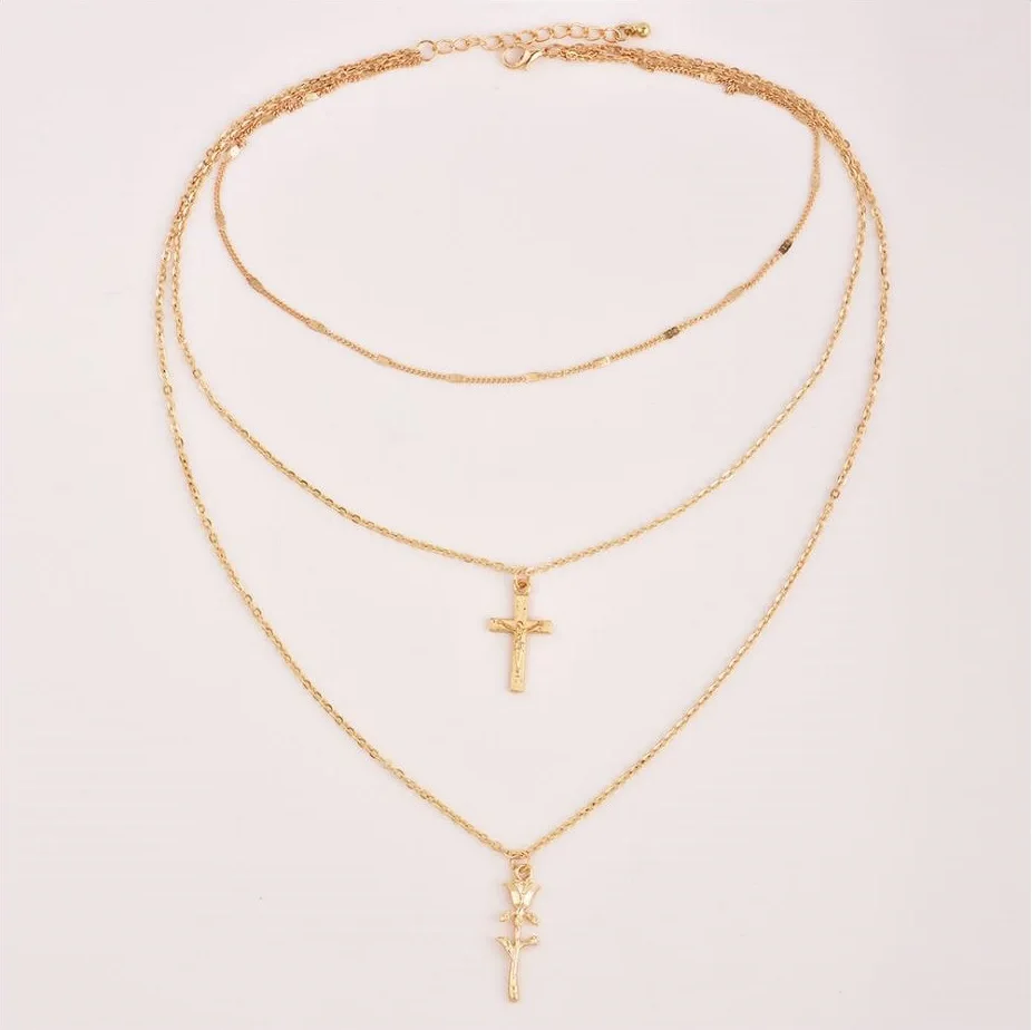 Модное ожерелье с подвеской в виде креста из сплава Иисуса Христа, трехслойное ожерелье, позолоченная металлическая цепочка-чокер