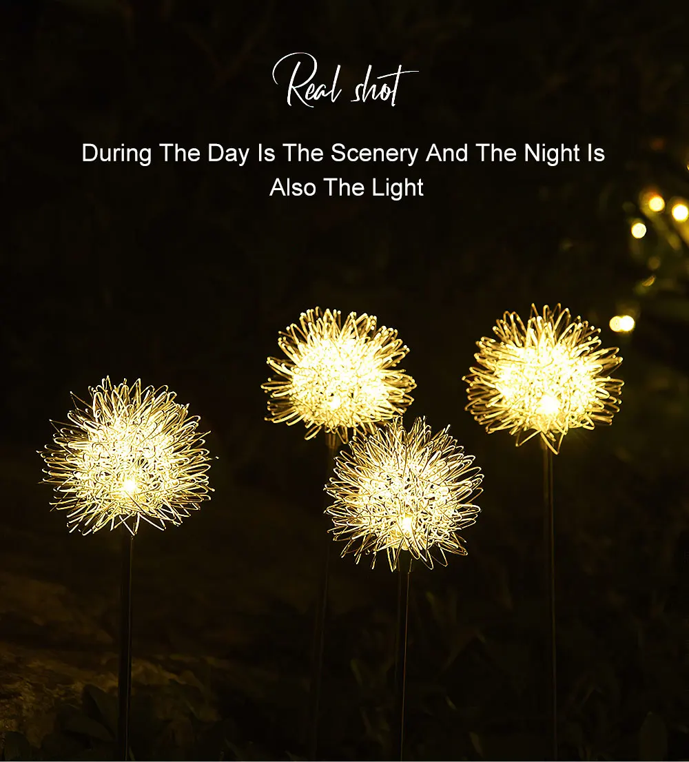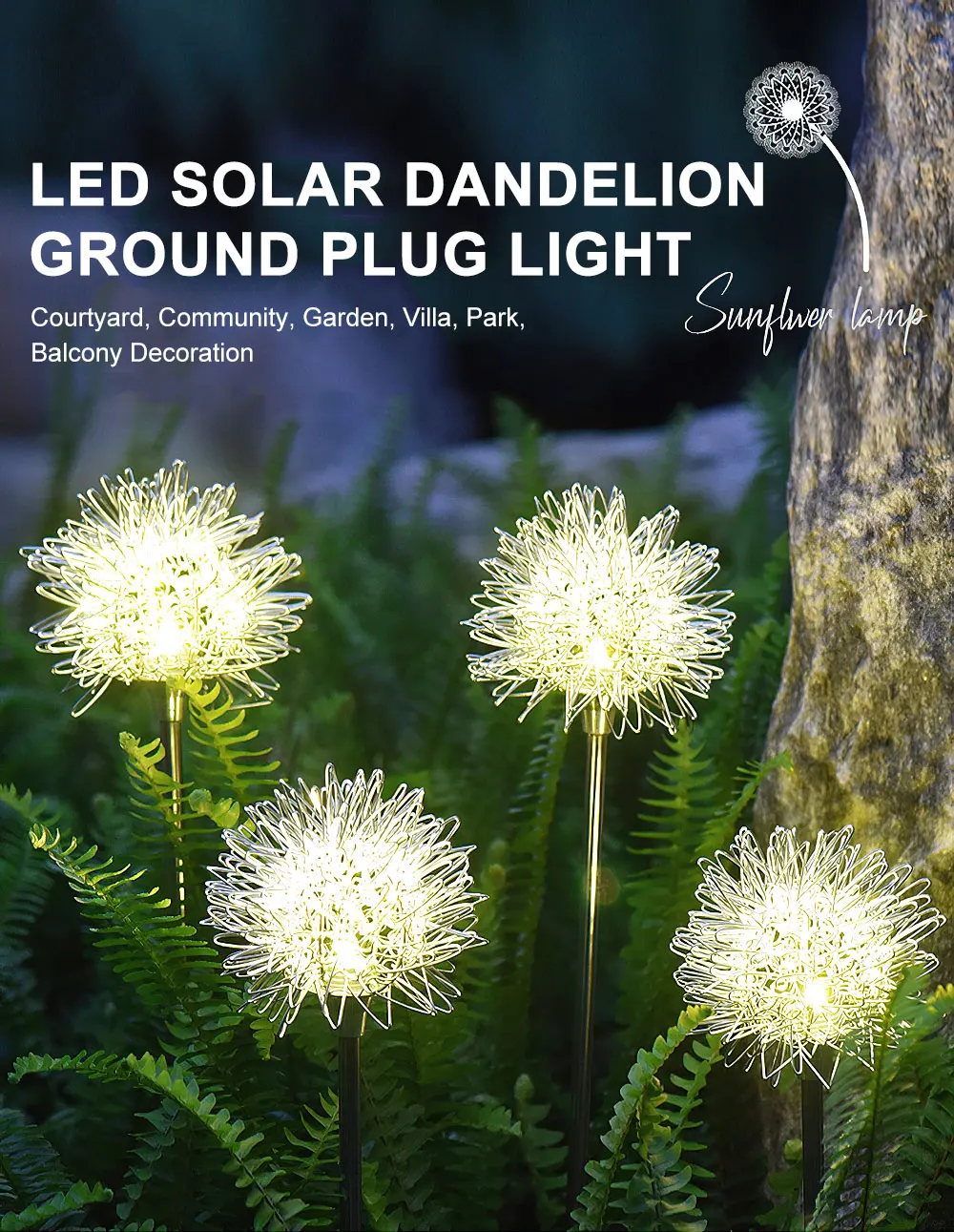 Одуванчик солнечный светильник может выдерживать все виды погоды, включая сильный дождь и снег, не беспокоясь о ржавчине и выцветании.