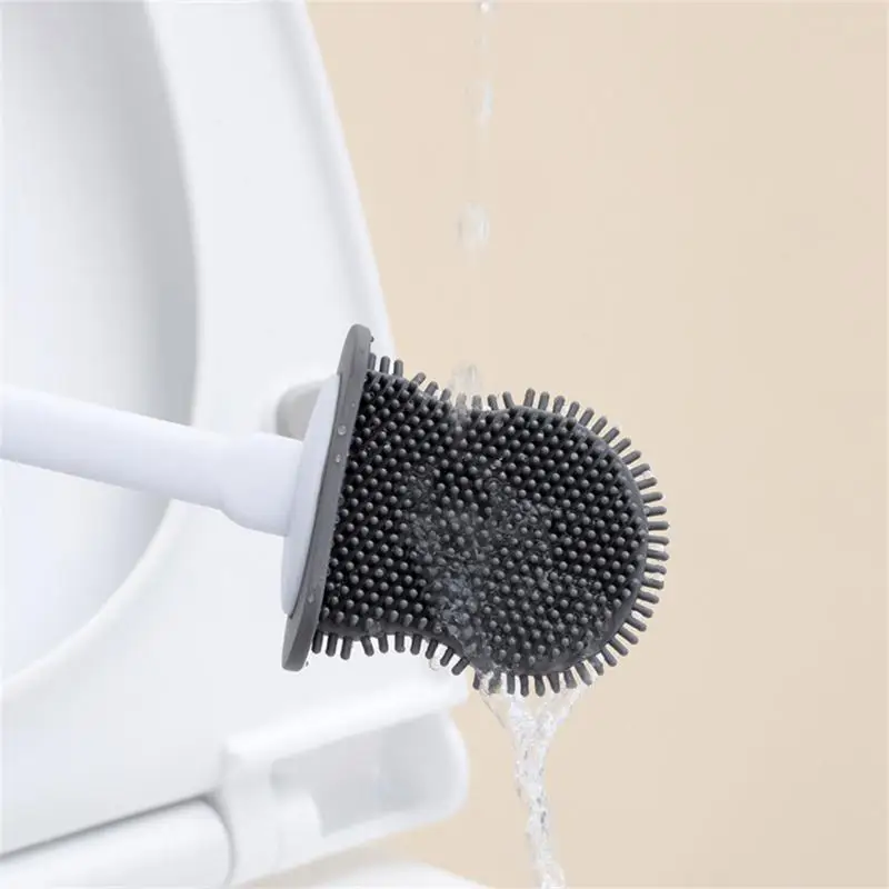 Бытовая щетка для унитаза, водонепроницаемая, с основанием, силиконовая, плоская, гибкая, с мягкой щетиной, держатель для чистки ванной комнаты