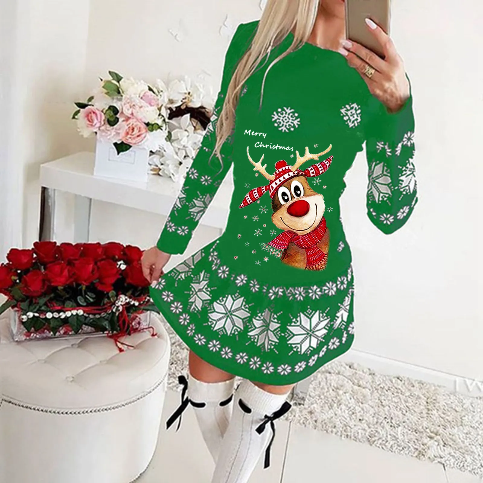 Новое рождественское платье-свитер, модное платье-мини свободного покроя с длинными рукавами и принтом снежинок EIK, повседневный женский красный Рождественский Костюм
