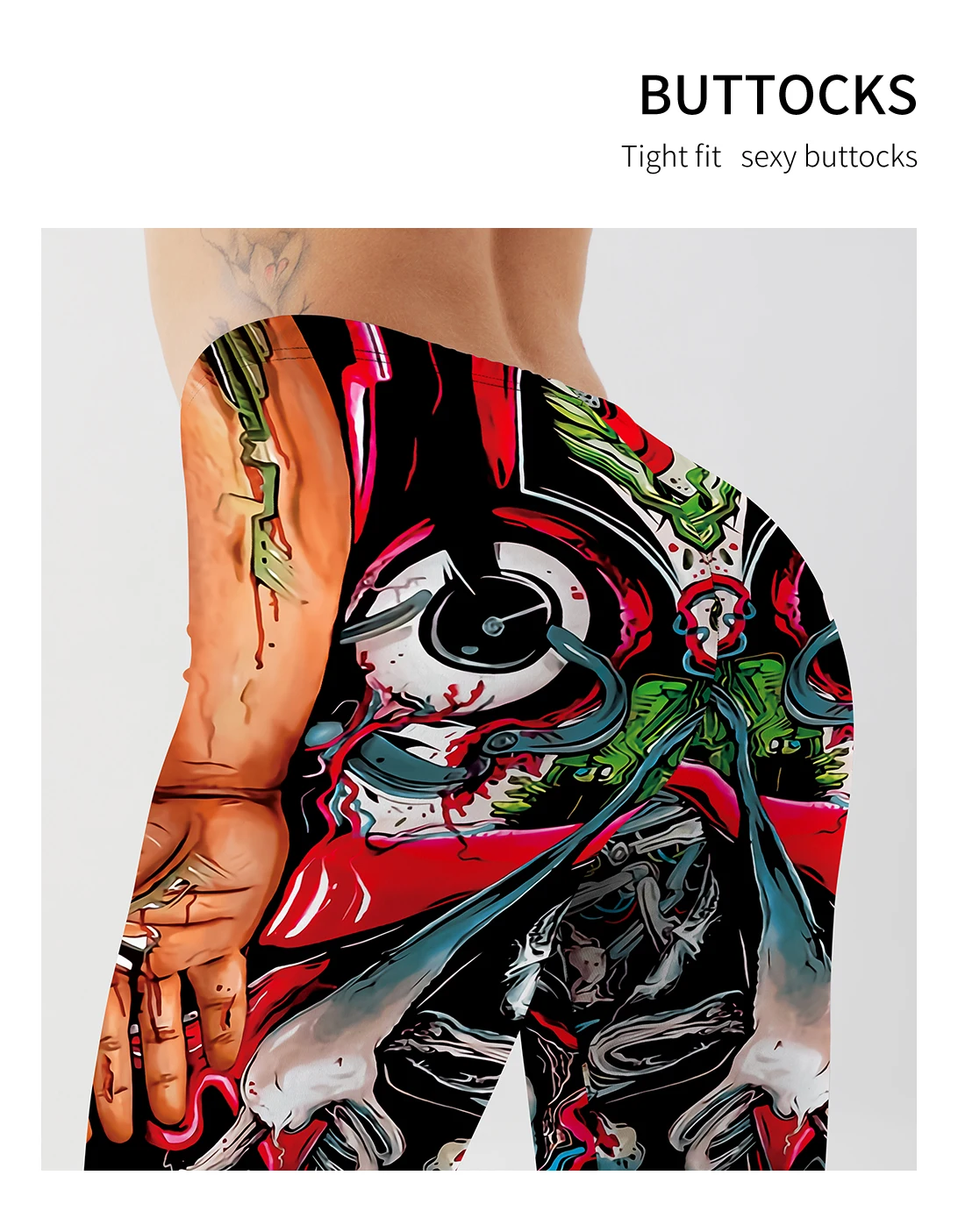 Женские леггинсы с принтом, женские пикантные легинсы для занятий фитнесом, эластичные брюки с эффектом пуш-ап