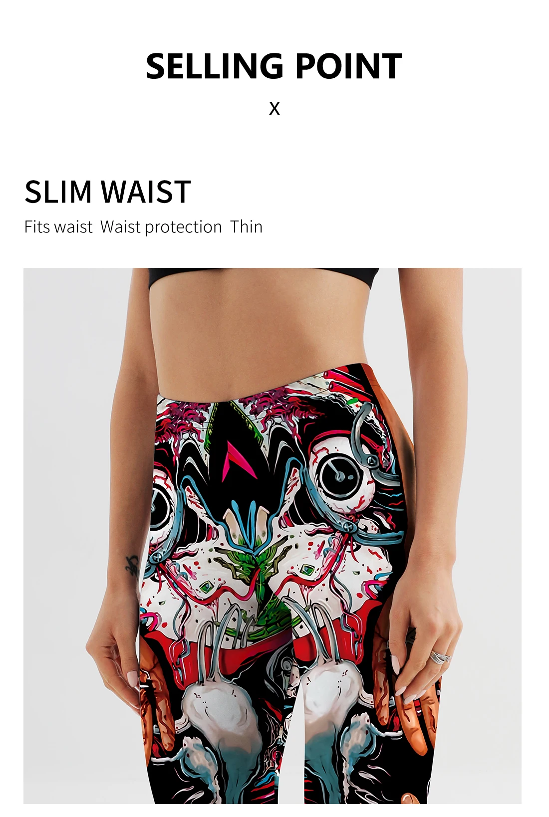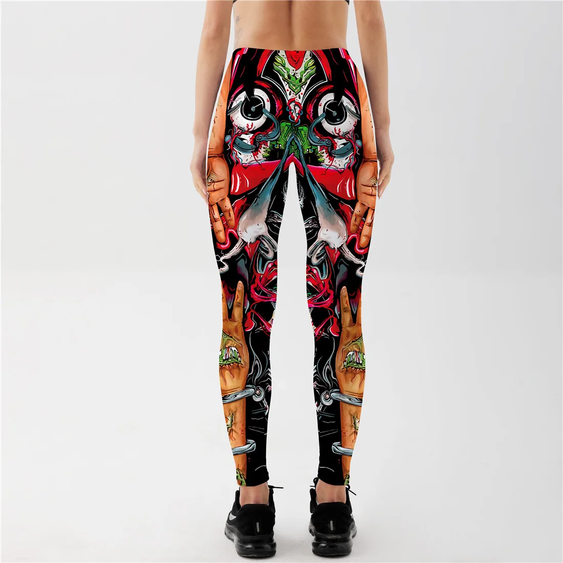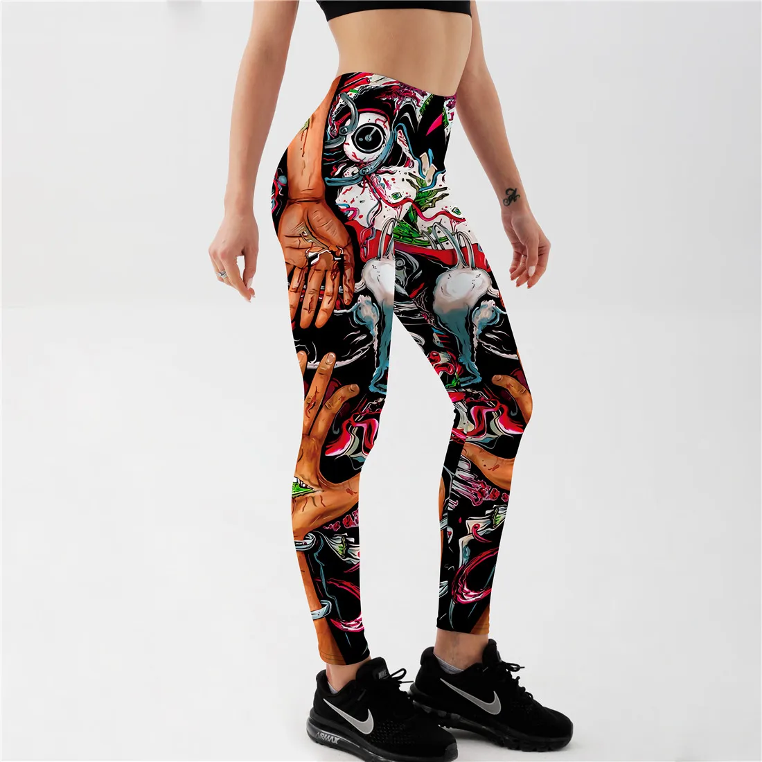 Леггинсы женские, с высокой талией, для фитнеса, с принтом черепа и...