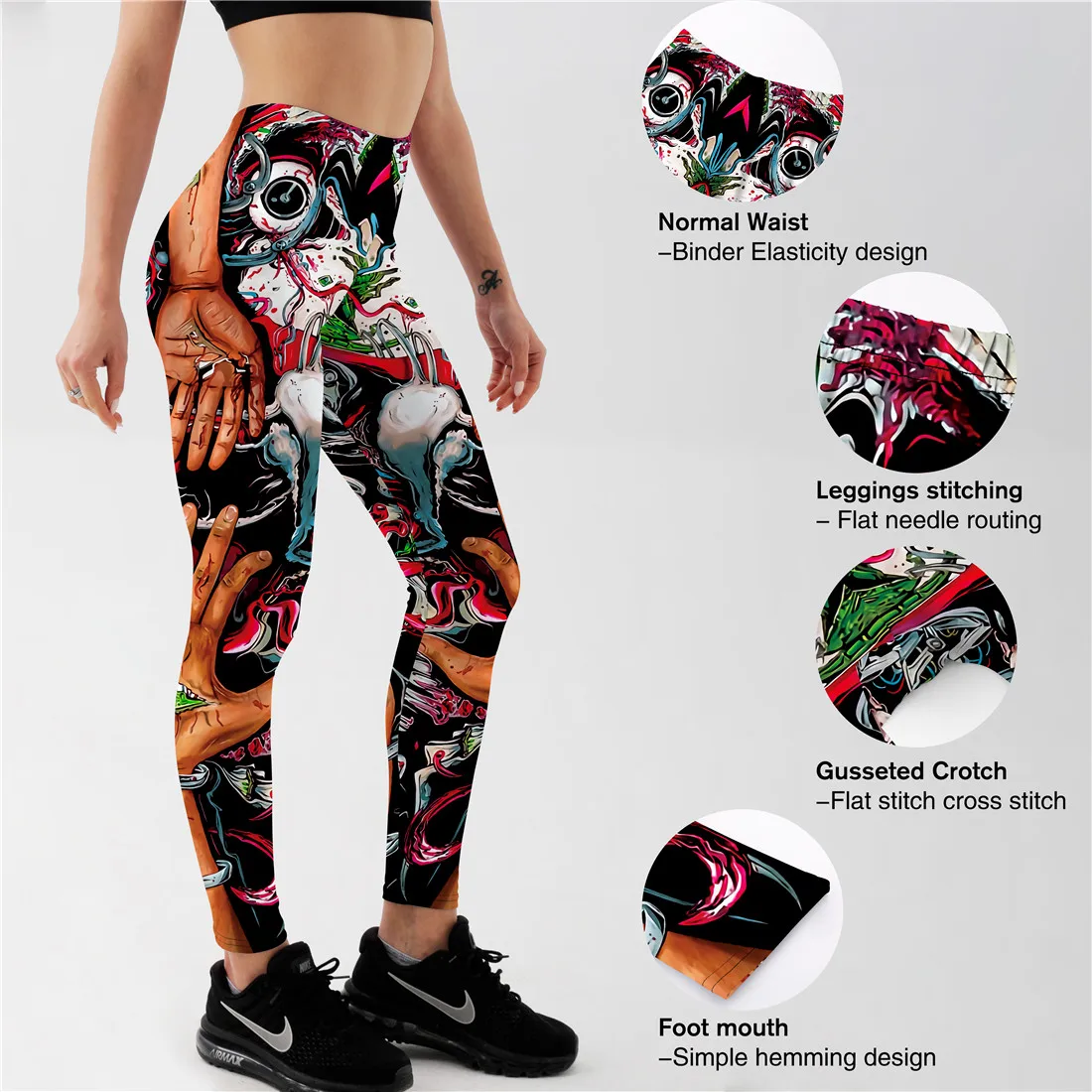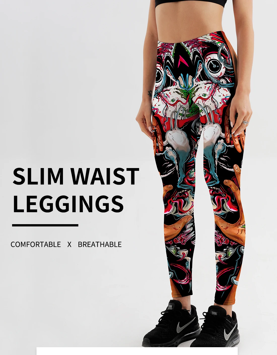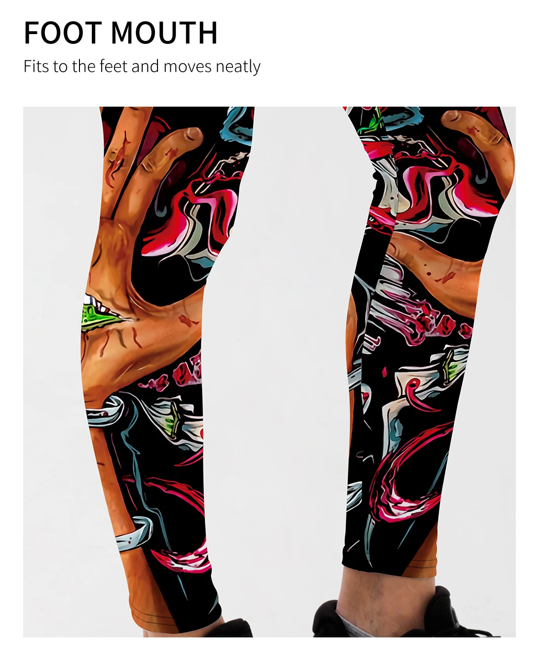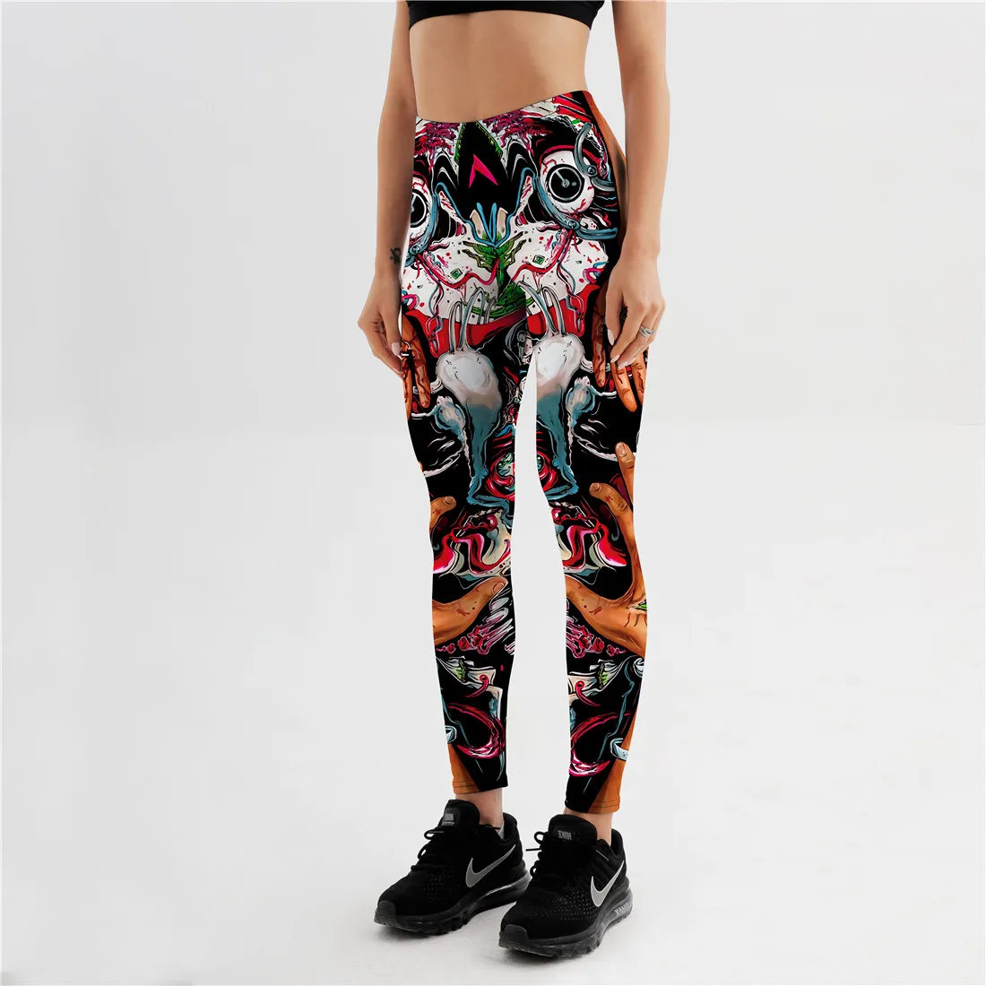 Леггинсы женские, с высокой талией, для фитнеса, с принтом черепа и...
