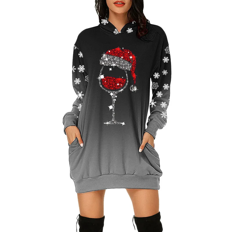 Женское платье с длинным рукавом и капюшоном, повседневное свободное платье-мини с блестками, рождественские костюмы, 2021