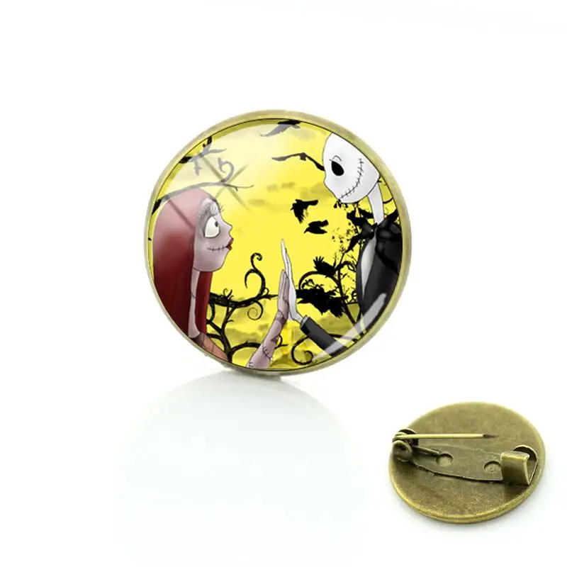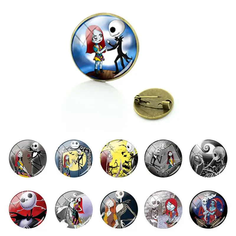 Дисней Кошмар перед Рождеством Джек Скеллингтон Салли аниме брошь булавки стеклянный кабошон для мужчин и женщин модные ювелирные изделия J725Изображения продуктов: