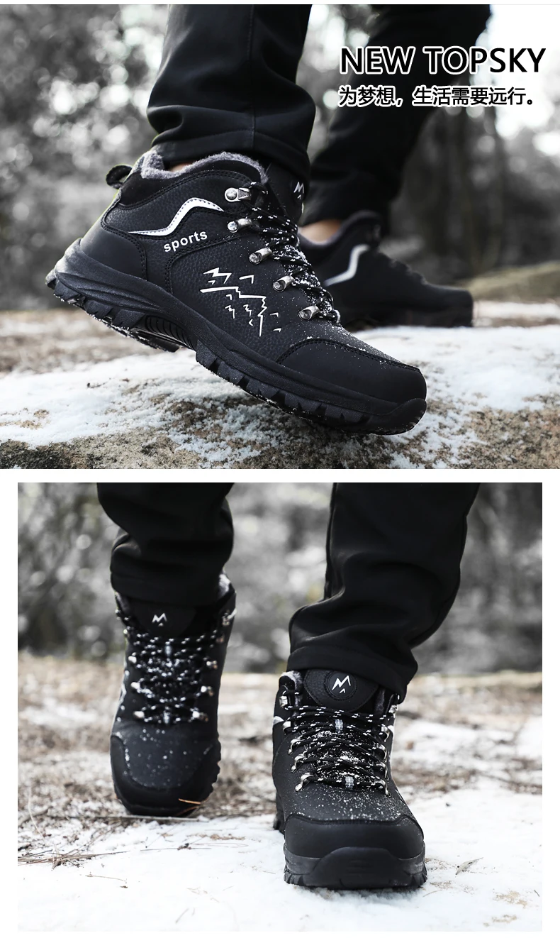 Брендовые зимние мужские ботинки, теплые плюшевые мужские ботинки, водонепроницаемые кожаные ботильоны, уличные Нескользящие мужские походные ботинки, кроссовки