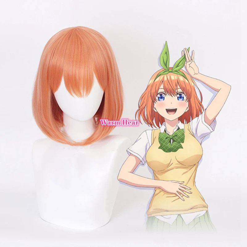 Anime The Quintessential Quintuplets Nakano Yotsuba Cosplay Short Orange Wig With Hair Hoop Role Play Wigs + a wig cap