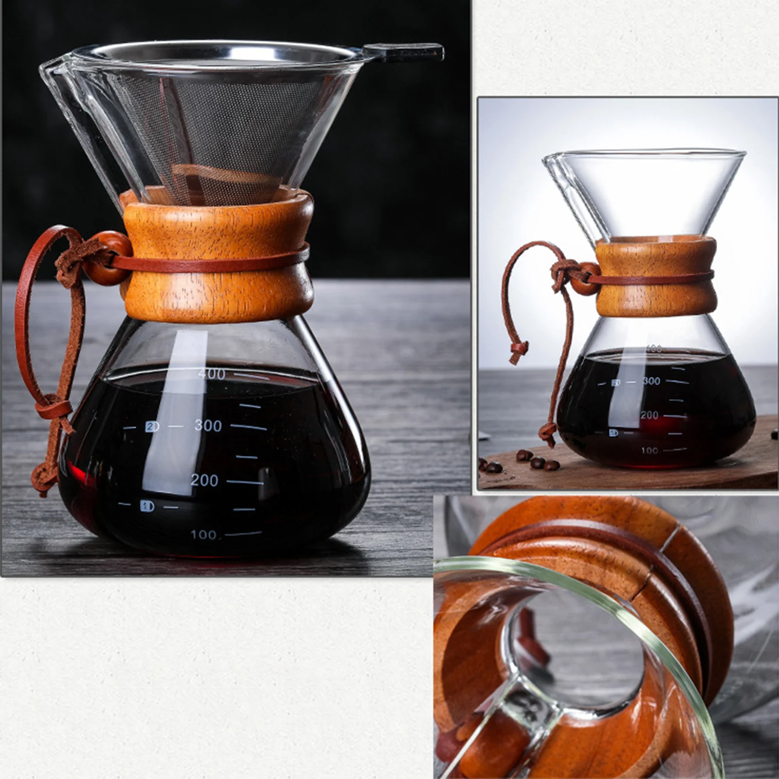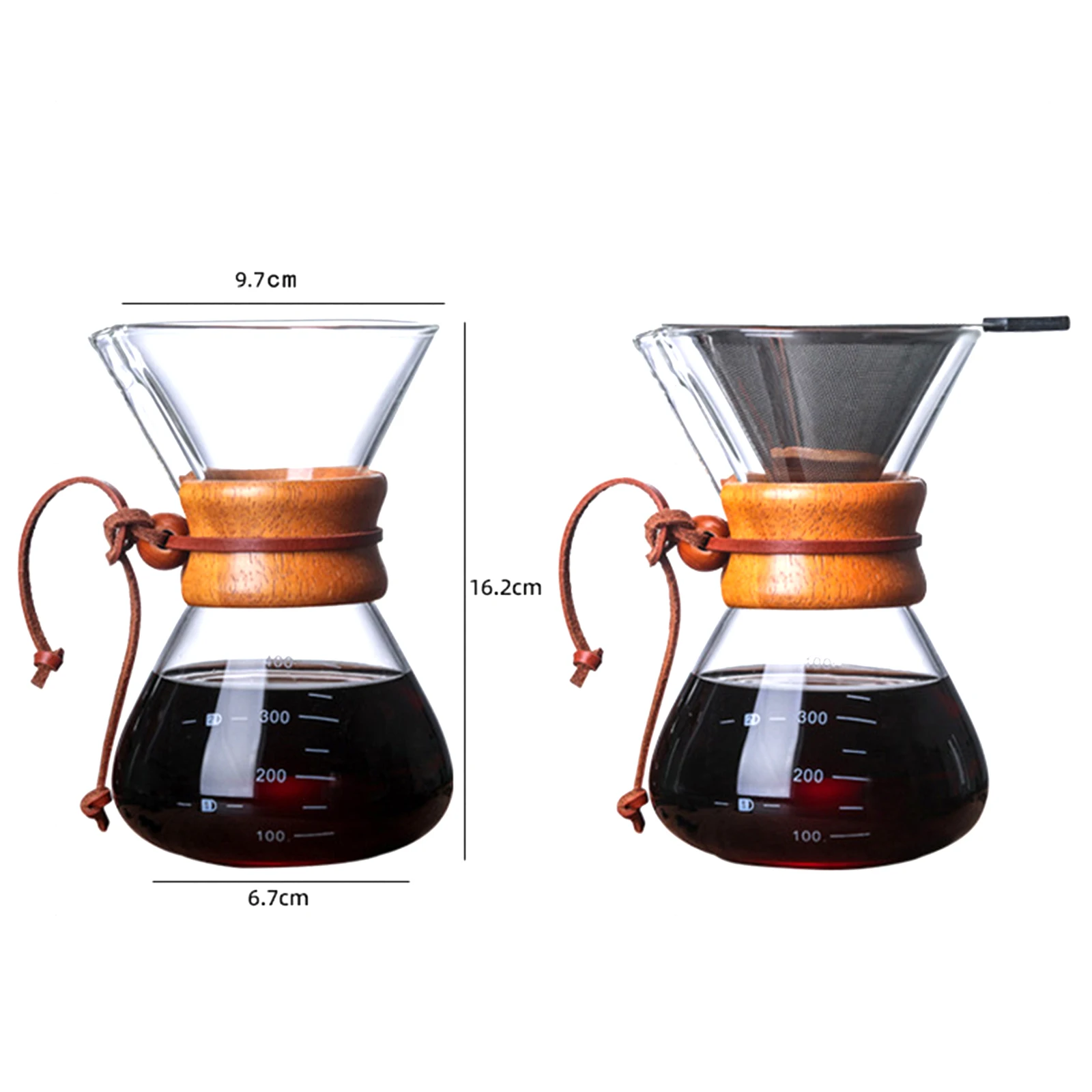 Стеклянный кофейник с фильтром из нержавеющей стали, 400 мл