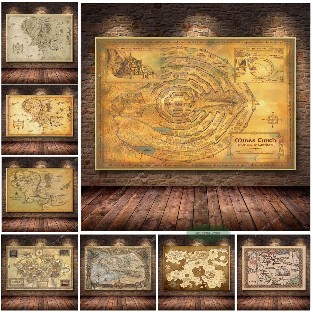 Плакат с изображением средней земли, популярная карта мира, плоский стиль, искусство на холсте, Картина на холсте, настенное искусство, гостиная, домашний декор