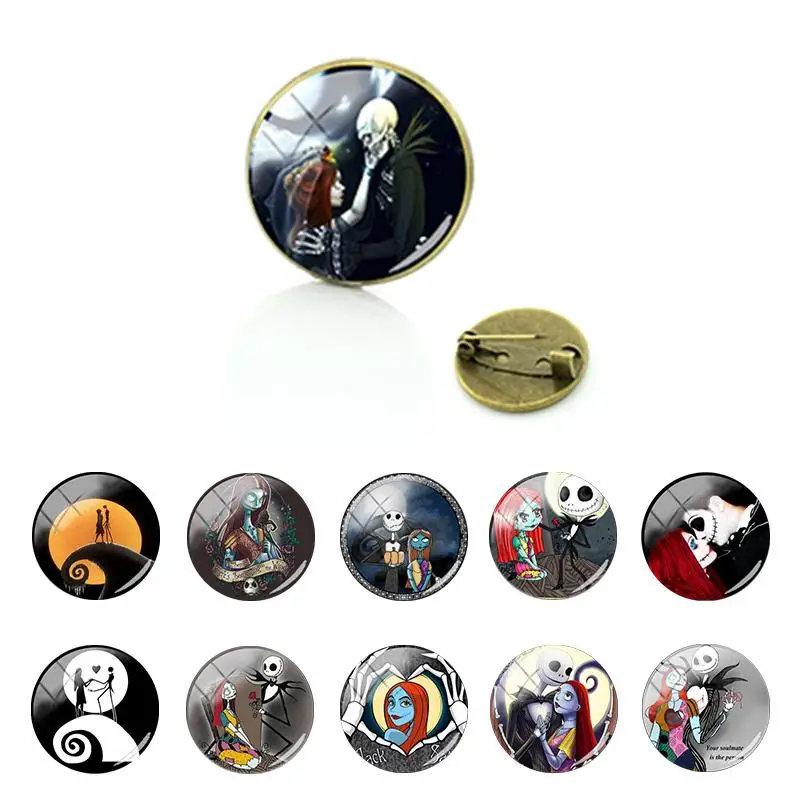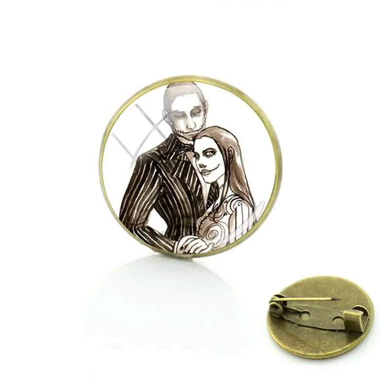 Классическая Брошь с изображением Джека Скеллингтона Салли из мультфильма Кошмар перед Рождеством, круглая стеклянная Винтажная Брошь унисекс, J704