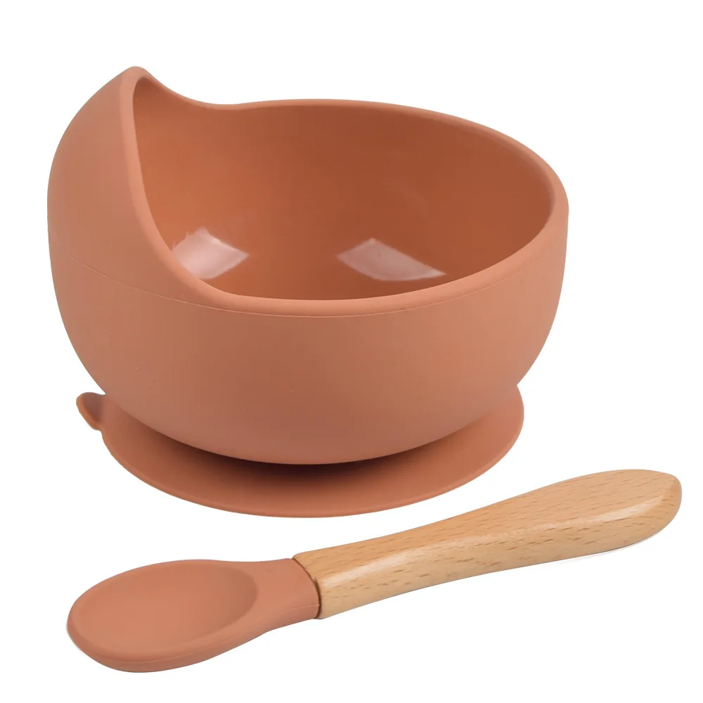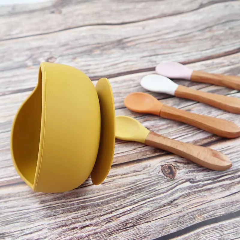 Силиконовая детская ложка, деревянная Нескользящая ложка карамельно...