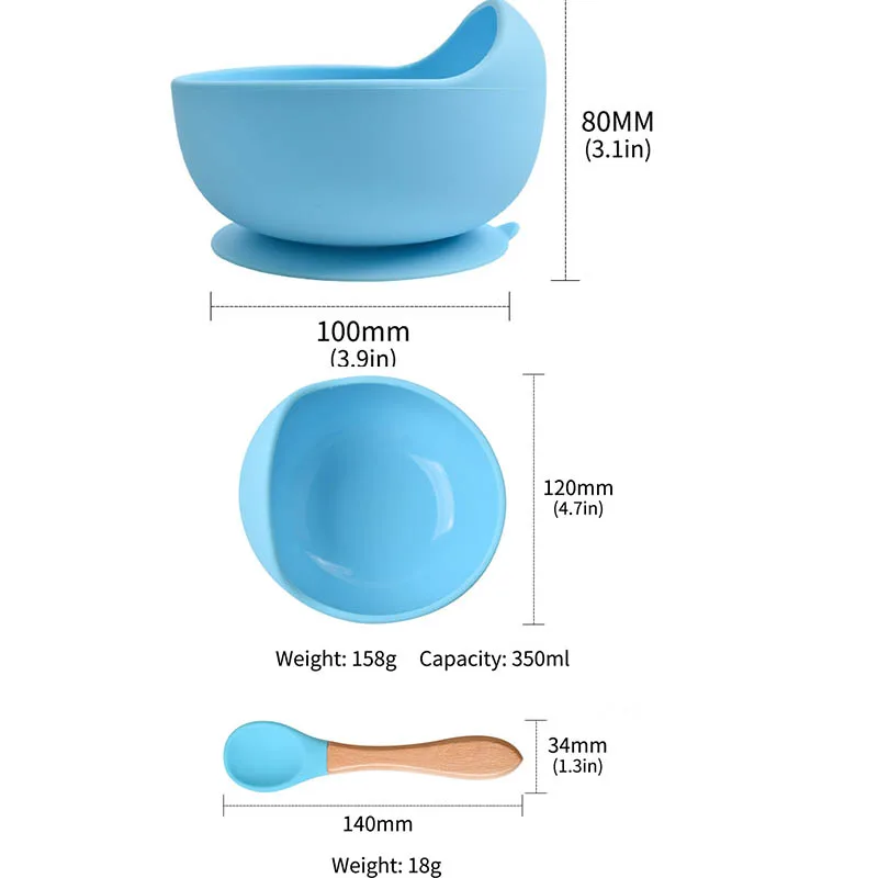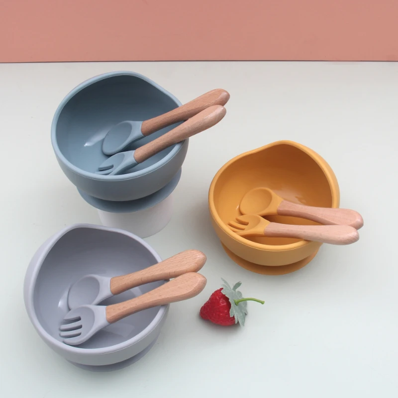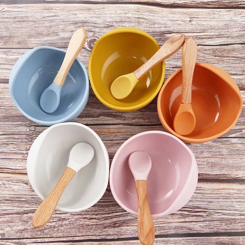 Силиконовая миска для кормления младенцев, 1 комплект, посуда, водонепроницаемая ложка, нескользящая посуда, не содержит Бисфенол А, силиконовые тарелки для младенцев, тарелка для младенцев