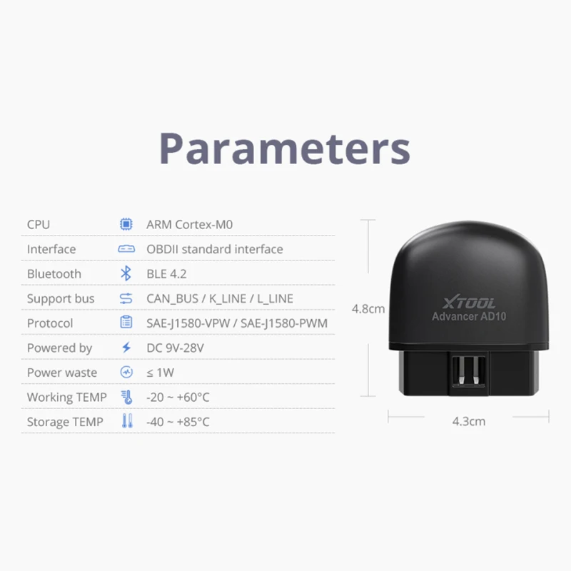 Диагностический сканер XTOOL AD10 OBD2, совместимый с Bluetooth ELM327, инженерный код, считывание, работа с IOSAndroid и проекционным дисплеем HUD