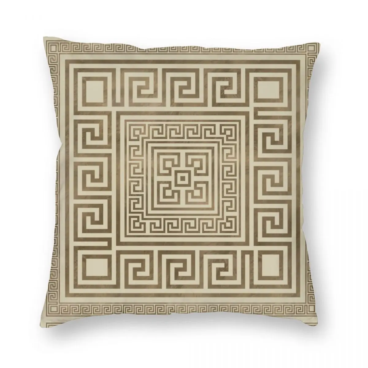 Греческий Ключ, орнамент греческий меандер, золотой чехол для подушки, полиэстеровый льняной бархатный чехол с принтом на молнии, декоративный чехол для диванной подушки, подушка для сидения