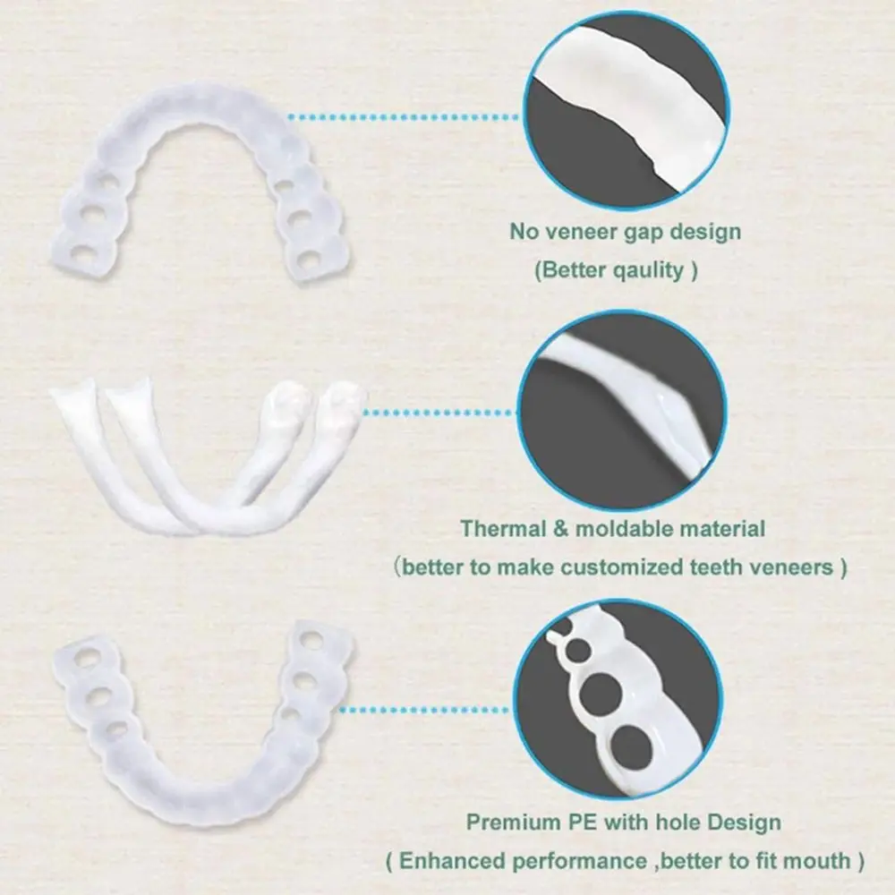 1. Специальная изготовленная на заказ прессформа работает для маскировки кривых, окрашенных, отсутствующих и побитых зубов.