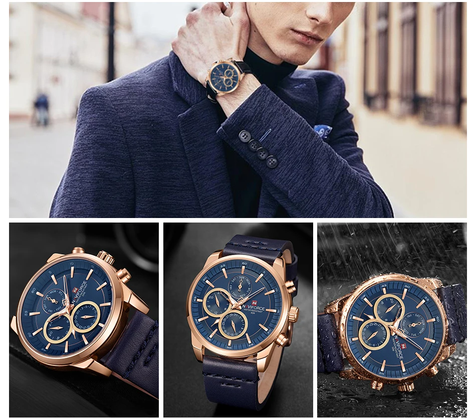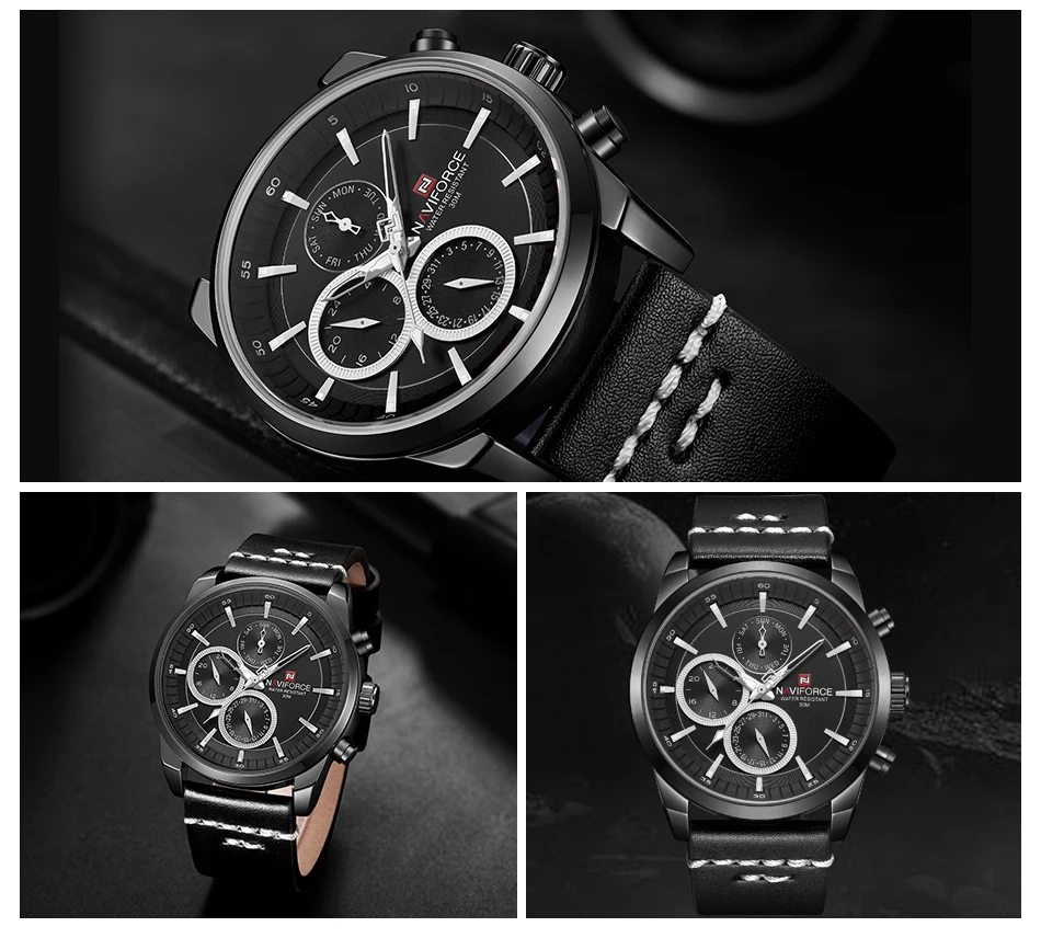 NAVIFORCE мужские часы Модные Бизнес водонепроницаемые наручные часы повседневные из натуральной кожи спортивные кварцевые часы для свиданий Relogio Masculino