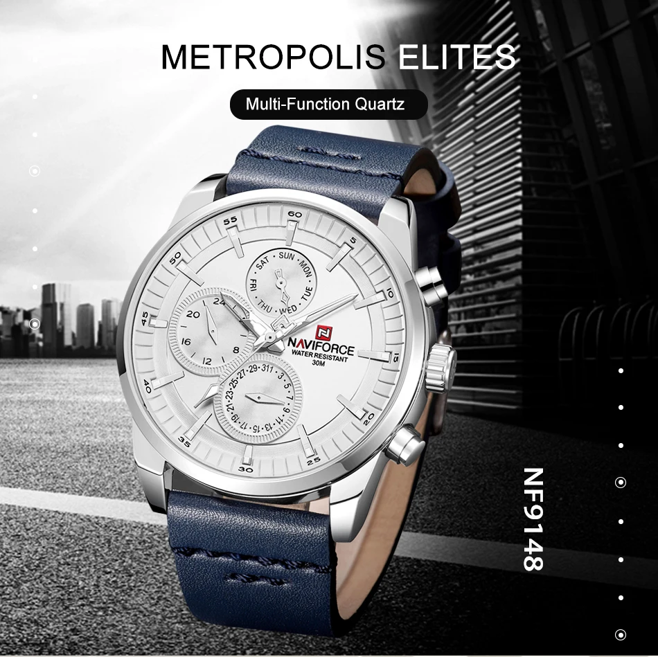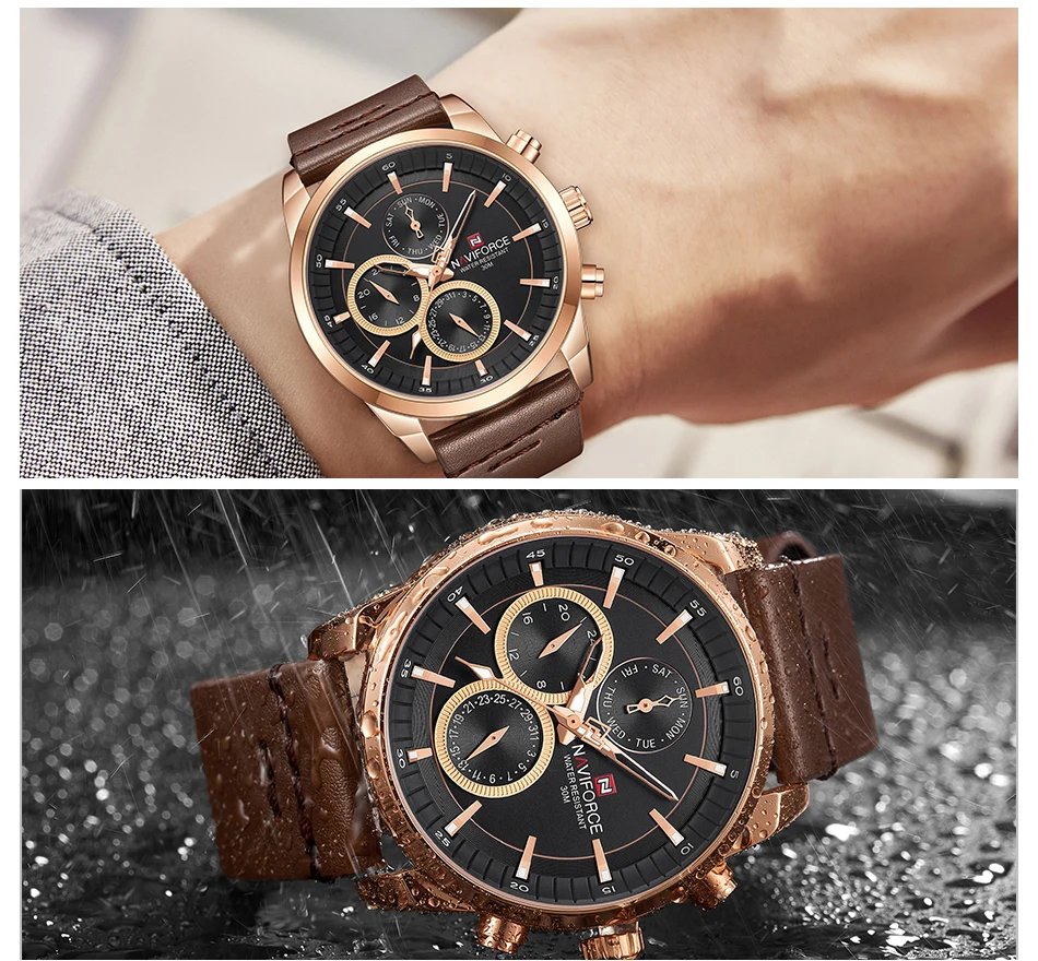 Часы наручные NAVIFORCE Мужские кварцевые, модные деловые водонепроницаемые повседневные спортивные, с натуральной кожей, с датой