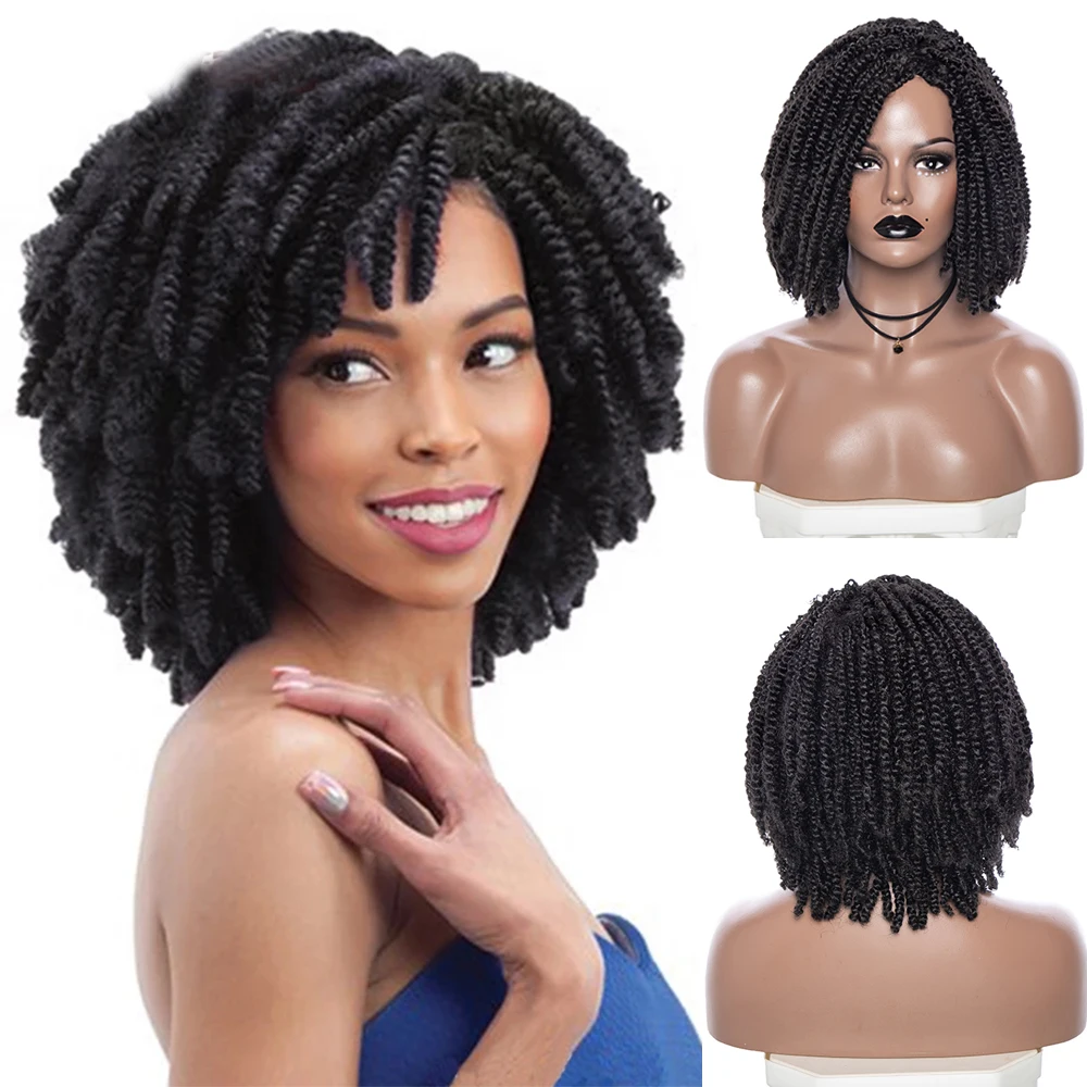 Мягкие короткие синтетические парики для чернокожих женщин, 14 дюймов, высокотемпературное волокно, Дред, Омбре, Берг, вязание крючком, скрученные волосы