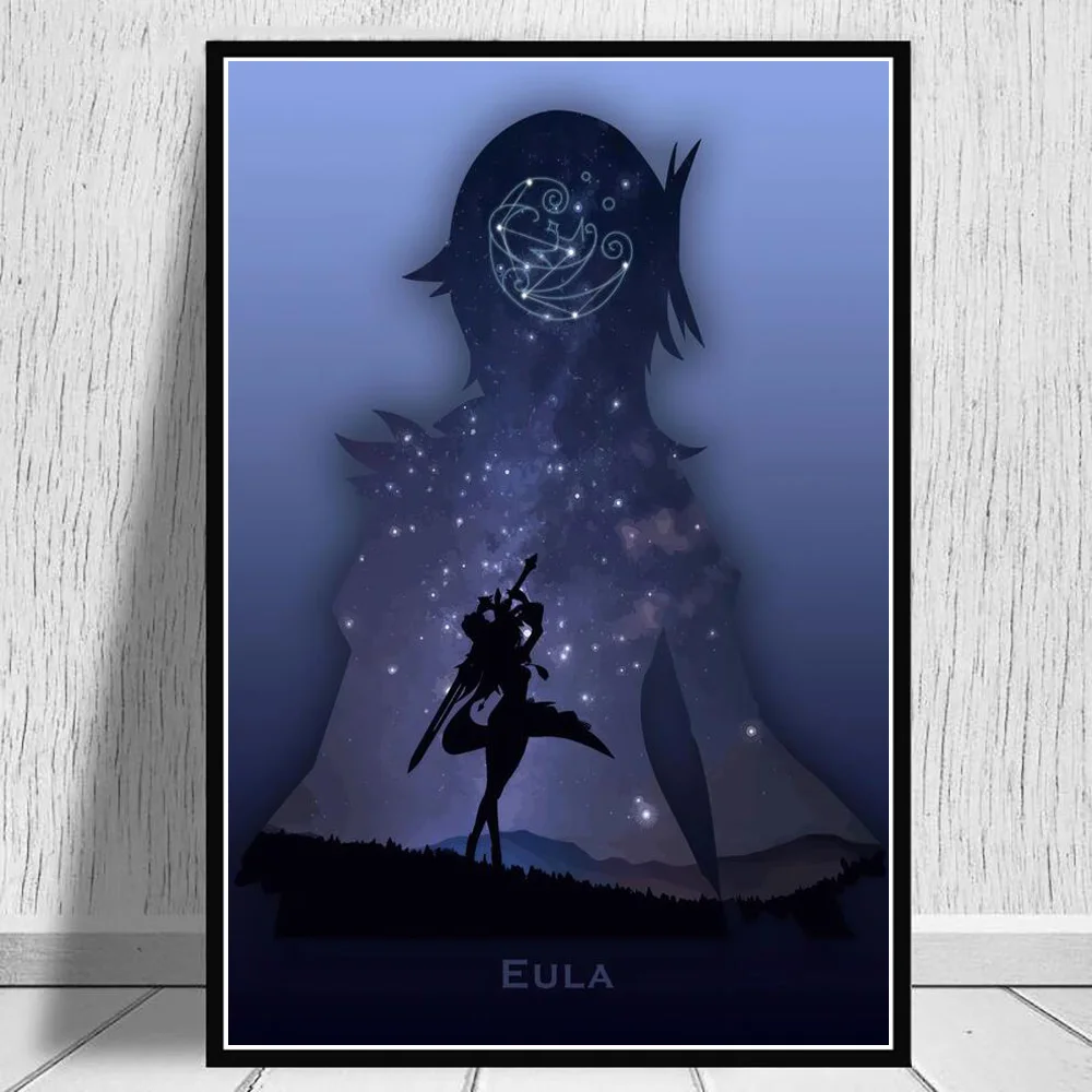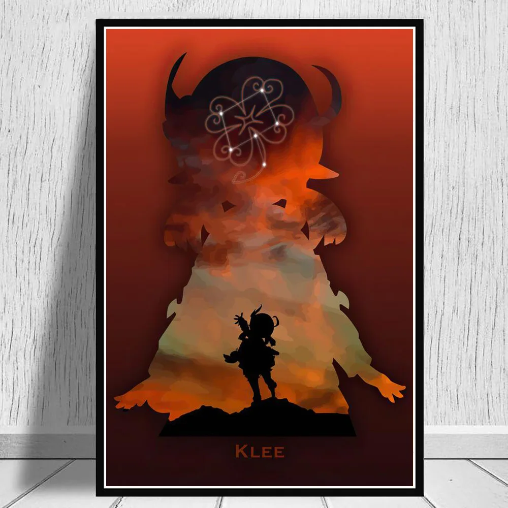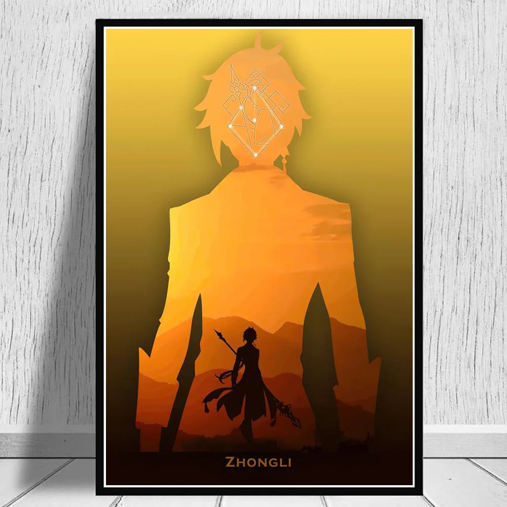 Популярная игра, воздействие Genshin, плакаты и принты, мультяшный персонаж, стены, картины для декора спальни