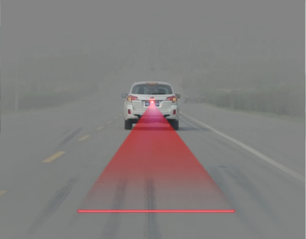 Новейший Разработанный лазерный противотуманный светильник-это установка красного лазерного передатчика в задней части транспортного средства для проецирования лазерного луча через воздух на землю в дождливую и туманную погоду. Легче найти, чем традиционный противотуманный светильник, и проникающая сила его сильнее. Это может напомнить позади транспортного средства, чтобы поддерживать безопасное расстояние. Лазерный луч снимается вниз с определенным углом наклона, чтобы гарантировать отсутствие прямого воздействия на глаза. Откройте светильник в солнечную погоду, только чтобы увидеть красную линию, проецируемую на земле, не нужно беспокоиться о том, что она защитит номерной знак транспортного средства.