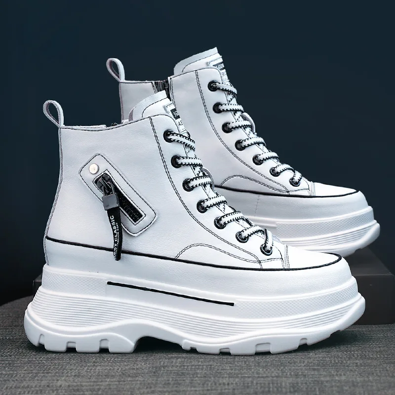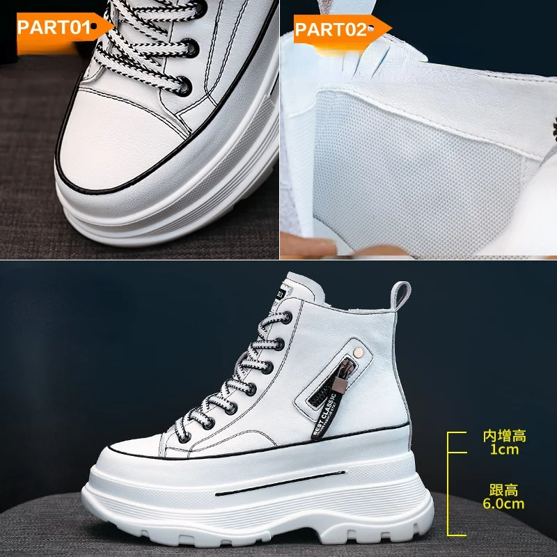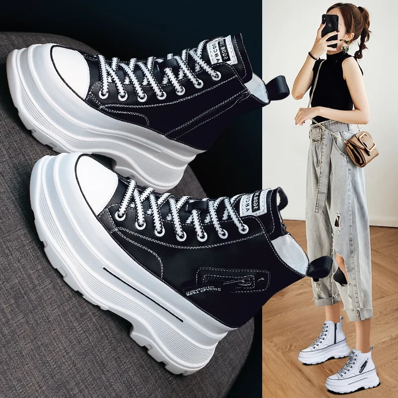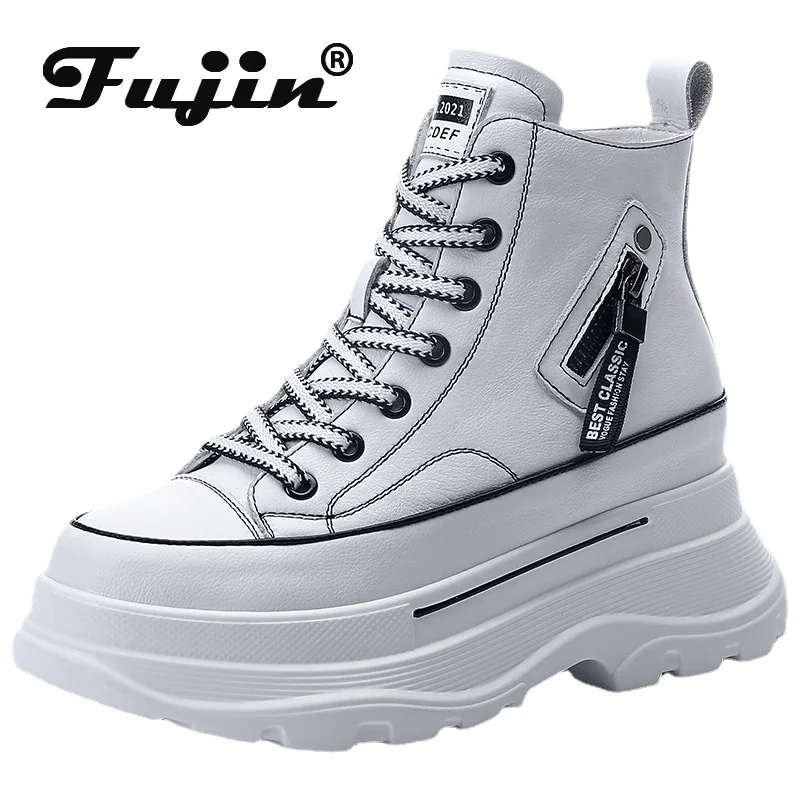 Fujinкроссовки на платформе 7 см; Обувь на массивном каблуке; Обувь из натуральной кожи с высоким берцем; Кроссовки; Женские ботильоны; Сезон весна-осень