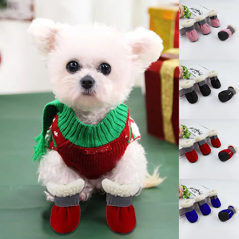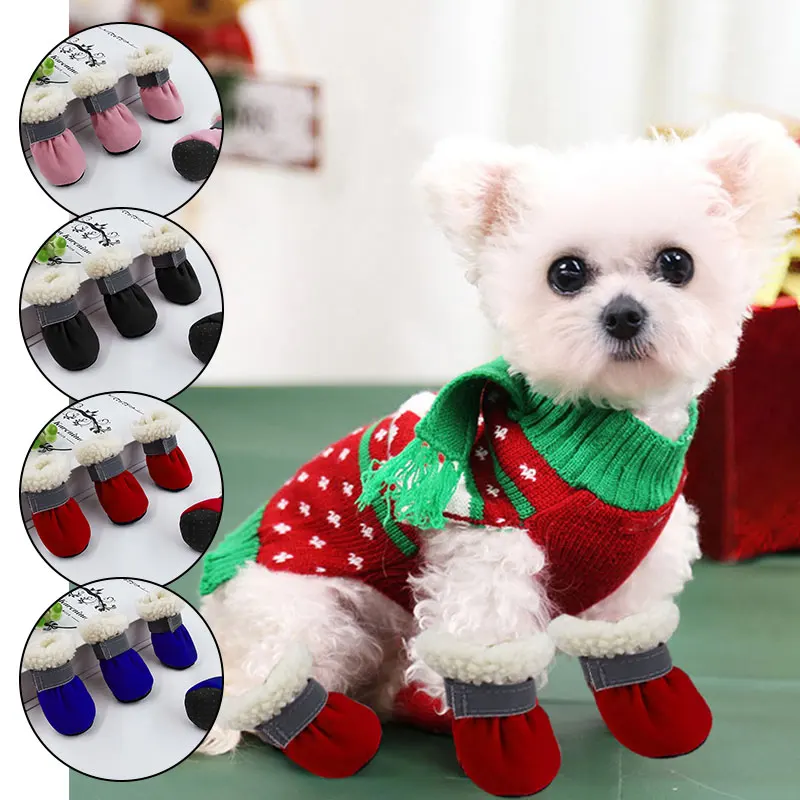 4 шт. милая мягкая обувь для маленьких собак, кошек, теплые зимние ...