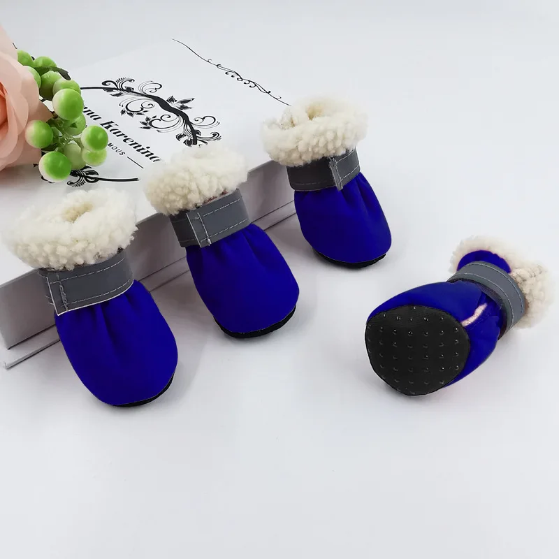 Зимние сапоги для домашних животных теплые и удобные, Нескользящие и износостойкие. Повседневный стиль, разные цвета на выбор. Дизайн светоотражающей ленты позволяет легко ходить ночью.