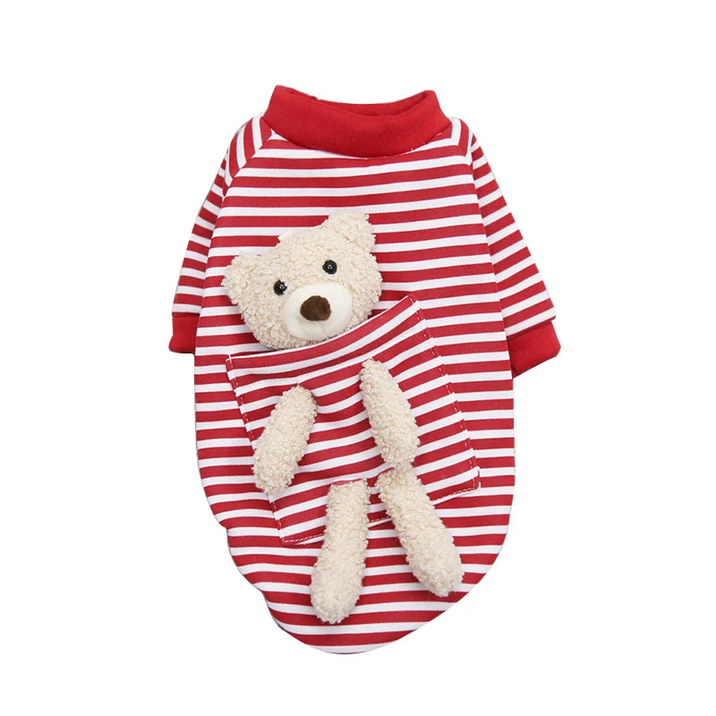 Толстовка с собакой и мультяшным медведем, милая осенне-зимняя повседневная полосатая одежда для маленьких собак, чихуахуа, Йоркширские принадлежности, худи для домашних животных