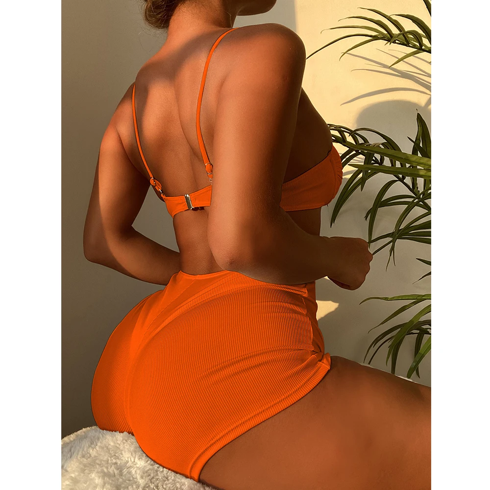 Новинка 2021, однотонный комплект бикини из трех предметов, купальник пуш-ап, женский купальный костюм, женское бикини в рубчик, купальные костюмы, пляжная одежда для плавания