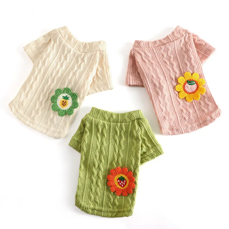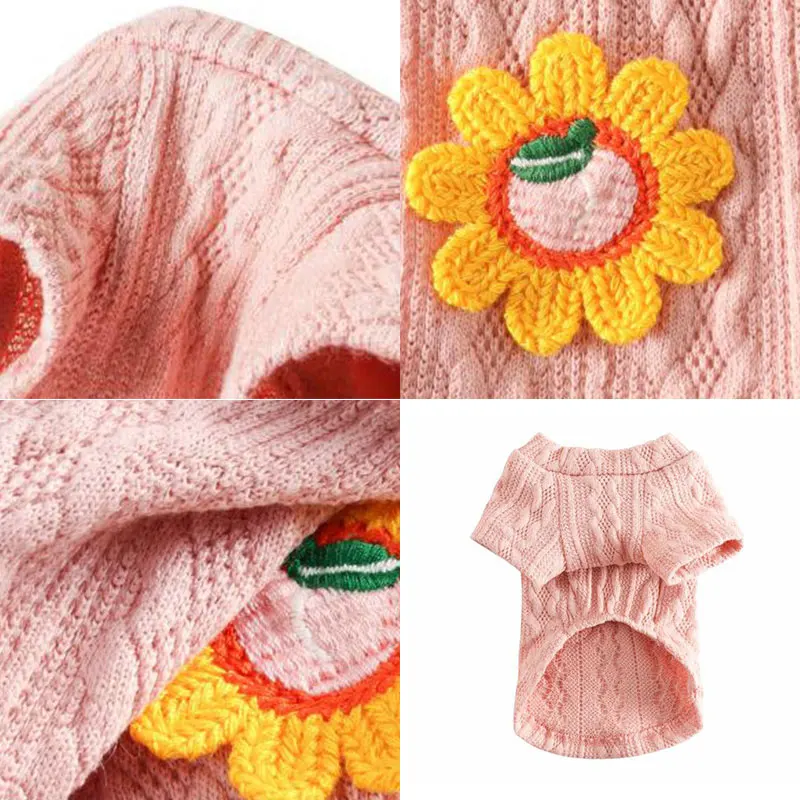 Симпатичный свитер с цветочным рисунком для собак, зимняя одежда дл...