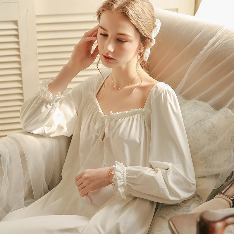 Ночная сорочка женская в дворцовом стиле, пикантная ночная рубашка с длинным рукавом, длинная Пижама принцессы, Свободная Домашняя одежда, весна-лето