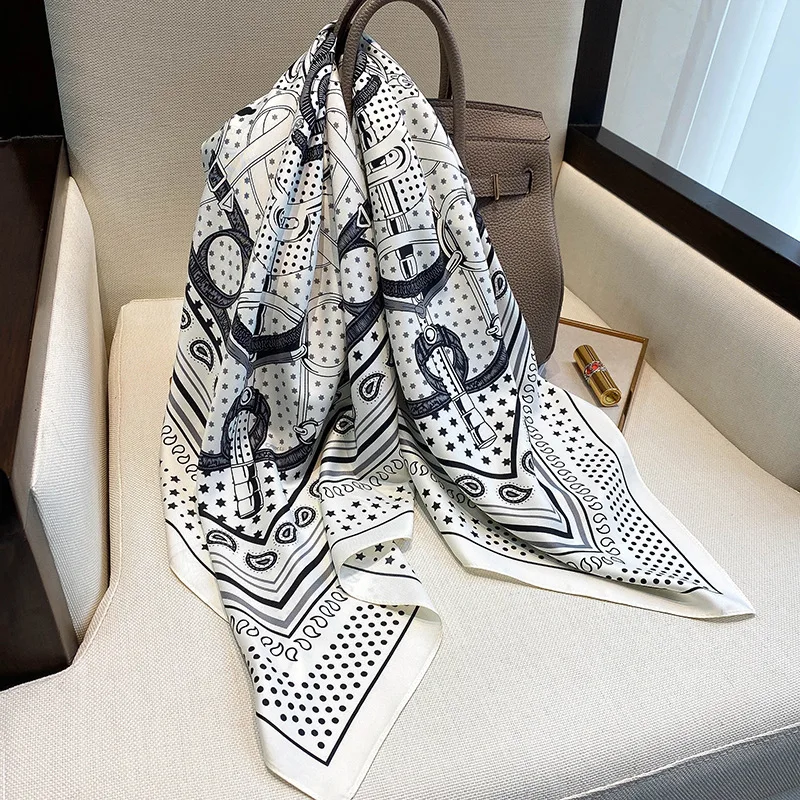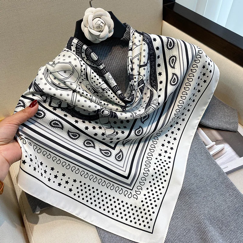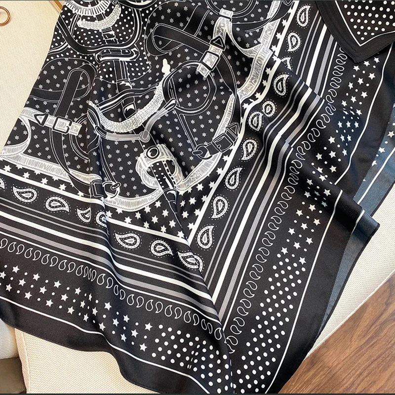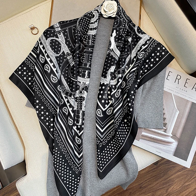Новинка осенний саржевый квадратный шарф для женщин с принтом 90*90 см шейный платок Женская повязка для волос бандана головной платок хиджаб 2022